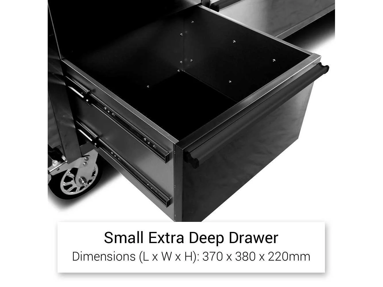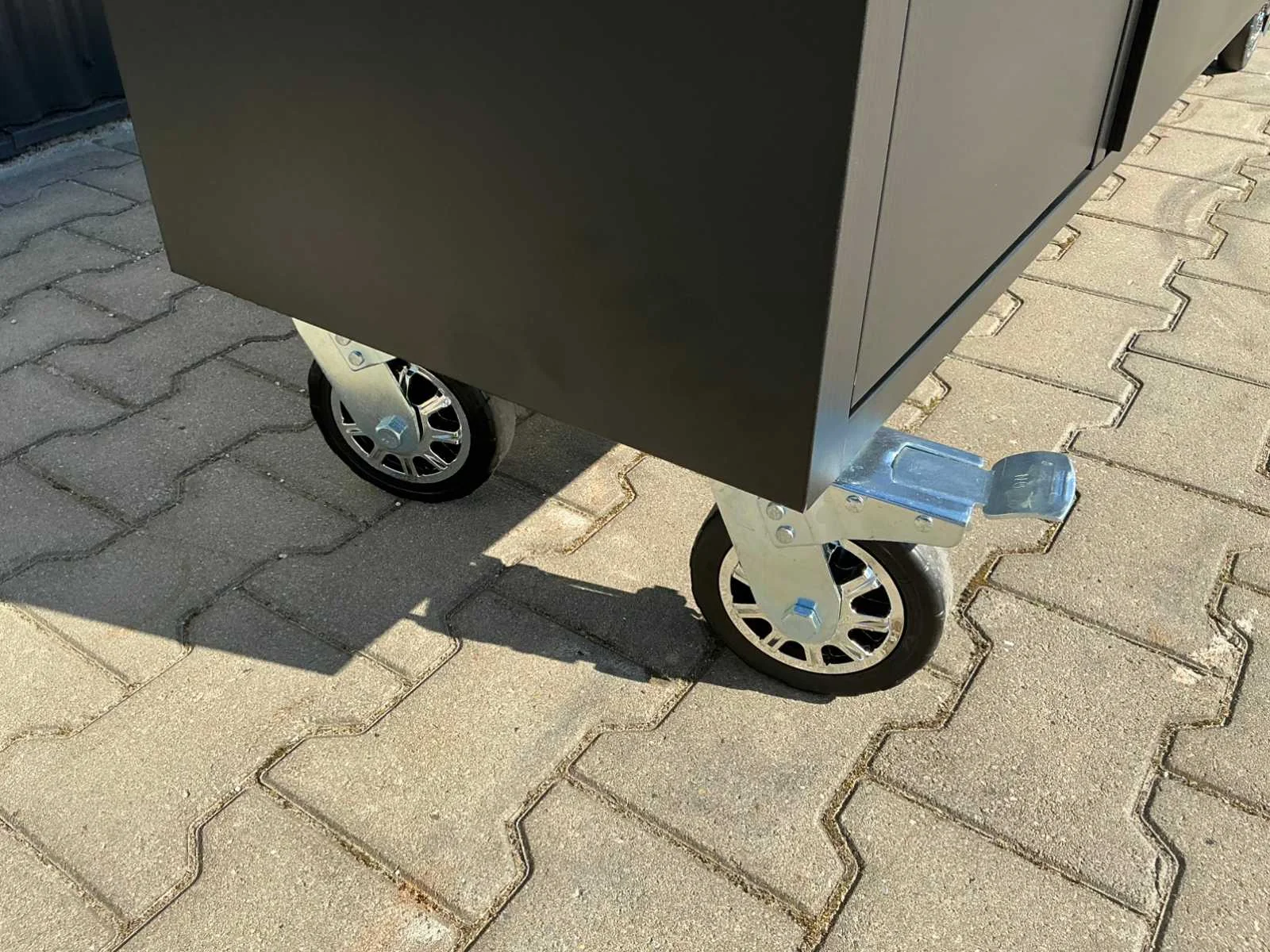 Breedte 180 cm Voorzien van poedercoating, luxe afgewerkt rubberhouten werkblad, 15 laden, 4 zwenkwielen (2 voorzien van rem), ongebruikt in doos. Merk: Field Type: 7215 Black Premium Bouwjaar: 2025