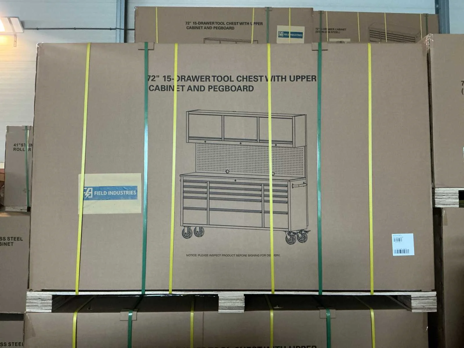 Breedte 180 cm Materiaal RVS Voorzien van luxe afgewerkt houten werkblad, 15 laden, 3 bovenkasten, achterwand, 4 zwenkwielen (2 voorzien van rem), ongebruikt in doos. Merk: Field Type: 7218 Inox Premium Bouwjaar: 2025 Totale afmeting Breedte: 1828mm Totale afmeting Hoogte: 1869mm
