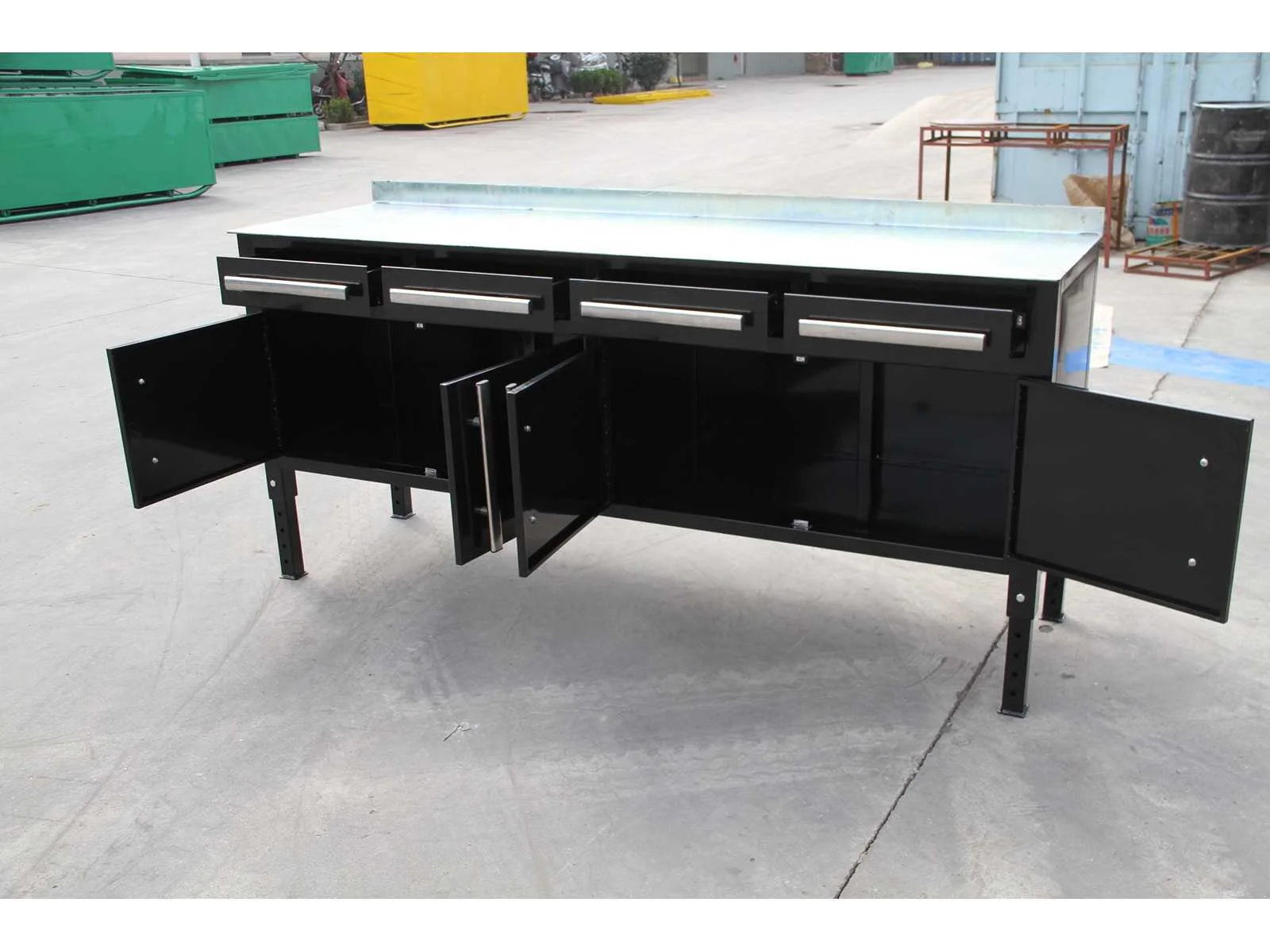Tafel met verzinkt bovenblad, dik 5 mm Ladefront: B48 × H12,5 cm Kastfront: B50 × H41 cm Pootlengte: 35 cm Gaten in Poot: Ø13 mm Hart-op-hart afstand gaten: 5 cm Kleur: Zwart (RAL9011)