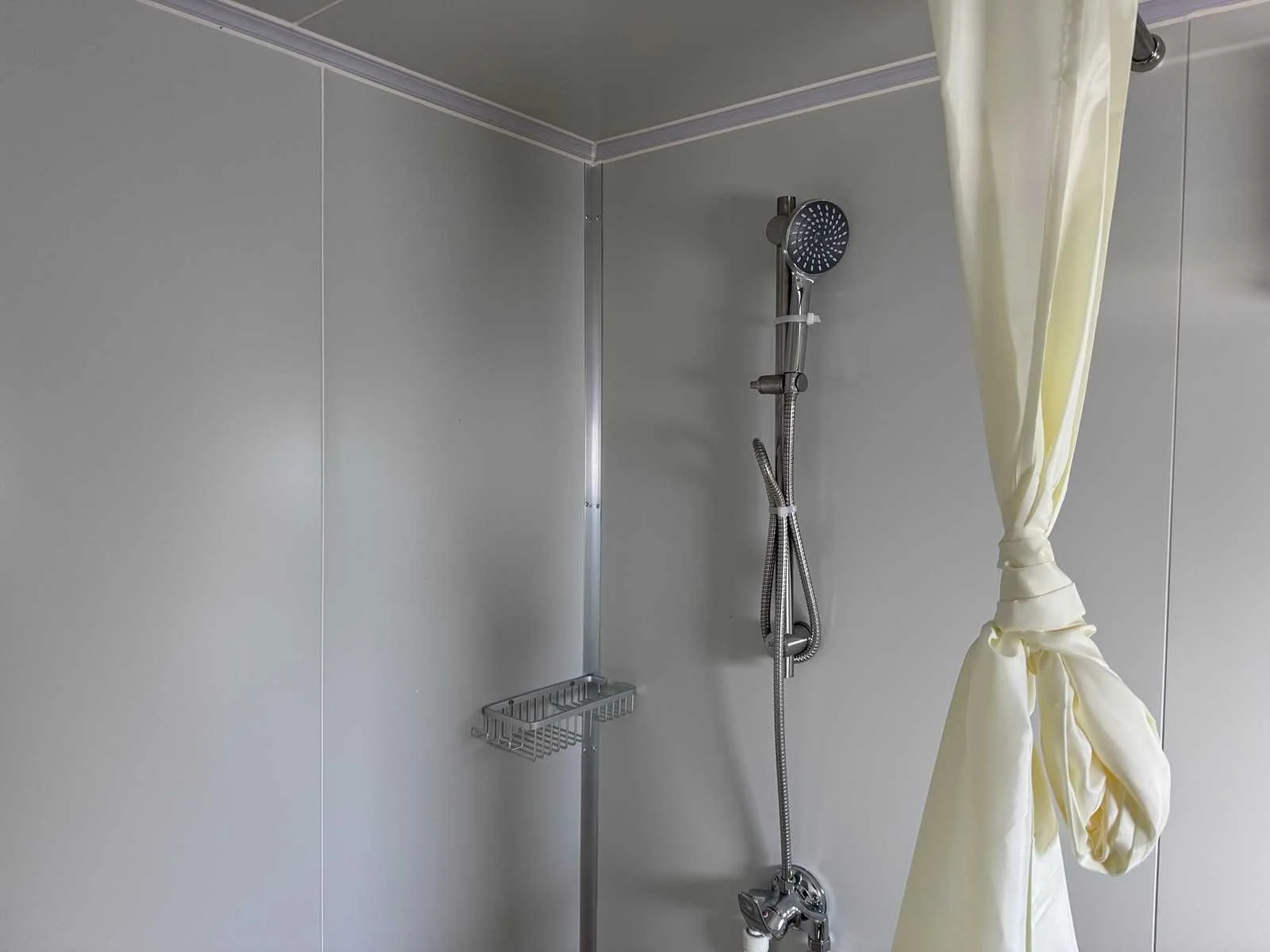 Voorzien van WC/toilet, douche, wastafel met spiegelkast, 230 Volt aansluiting, ventilatiesysteem, plafondverlichting, afsluitbaar met sleutel en knopcilinder, lepelgaten en hijsogen Merk: Field Facility Type: Restroom “De Luxe” Bouwjaar: 2025 Afmeting l: 2160mm Aantal ramen: 1 Aantal toiletten: 1 Aantal wastafels: 1 Aantal douches: 1 Eigen gewicht: 640kg Totale afmeting L: 2160mm Totale afmeting Breedte: 1920mm Totale afmeting Hoogte: 2360mm