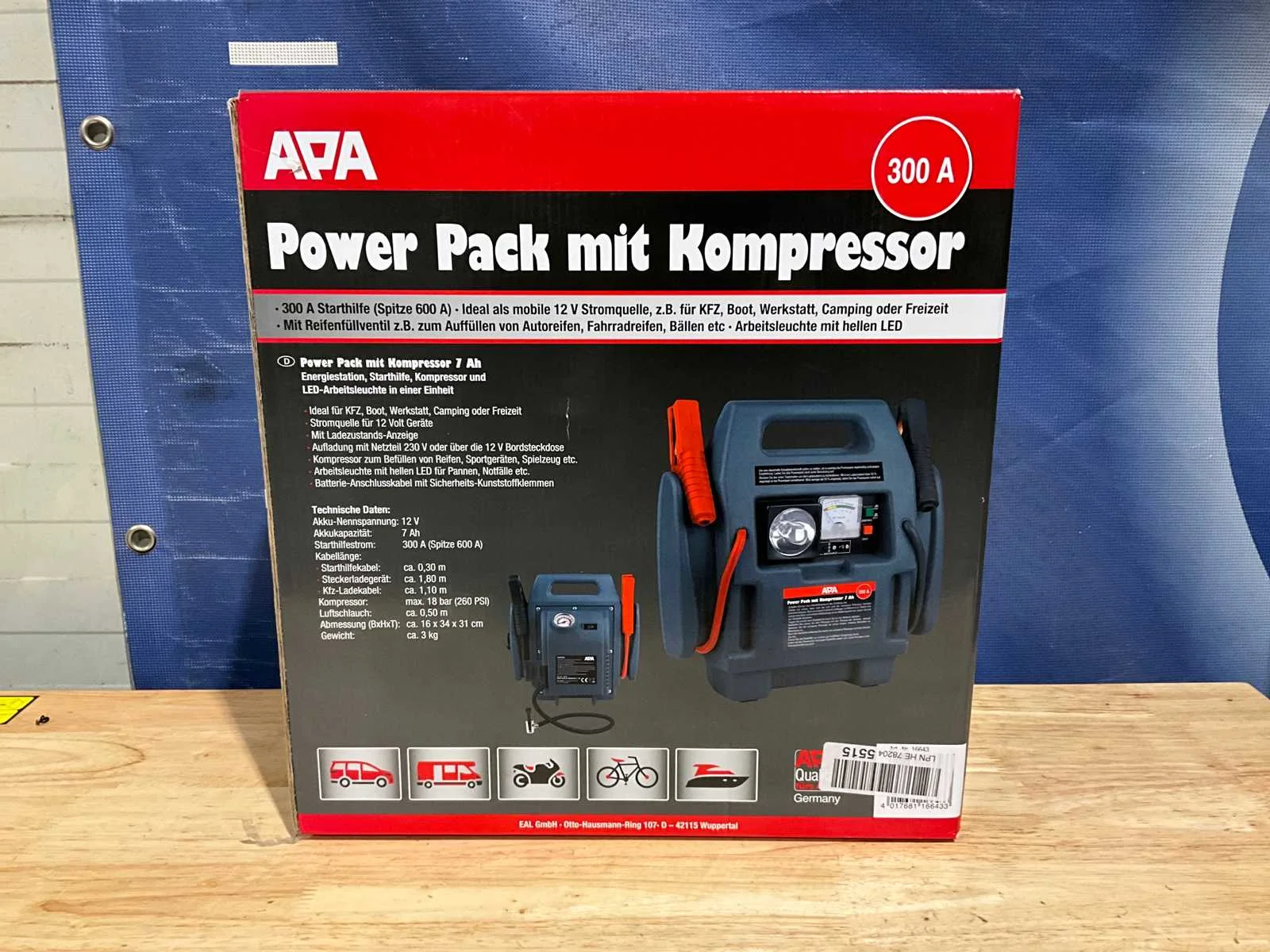 300A; inclusief netadapter; handleiding; ongebruikt in doos Merk: APA Type: Power Pack 300A Spanning: 12V Met starthulpfunctie: true Aansluiting: 230V