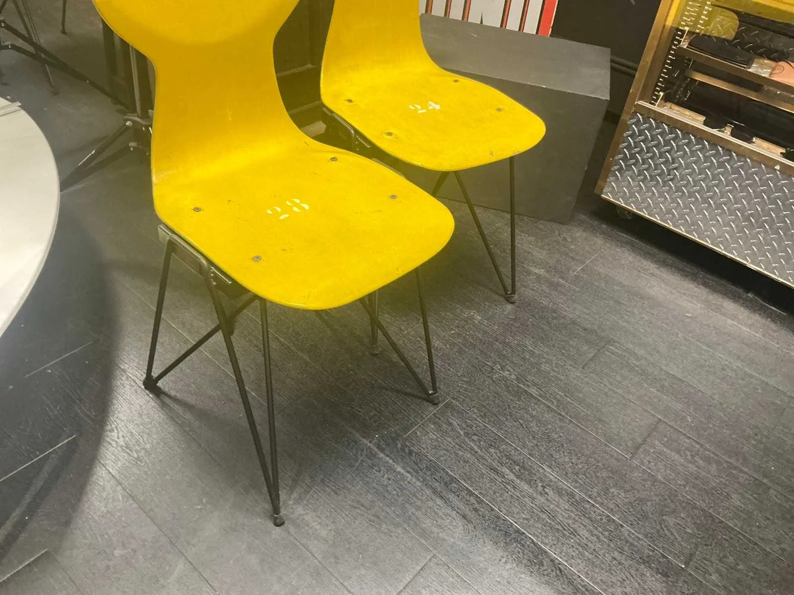 Stoelnummers 24 en 28 Materiaal: Hout / metaal. Lengte: 45cm Breedte: 43cm Hoogte: 87cm Herkomst: Adelaarshorst