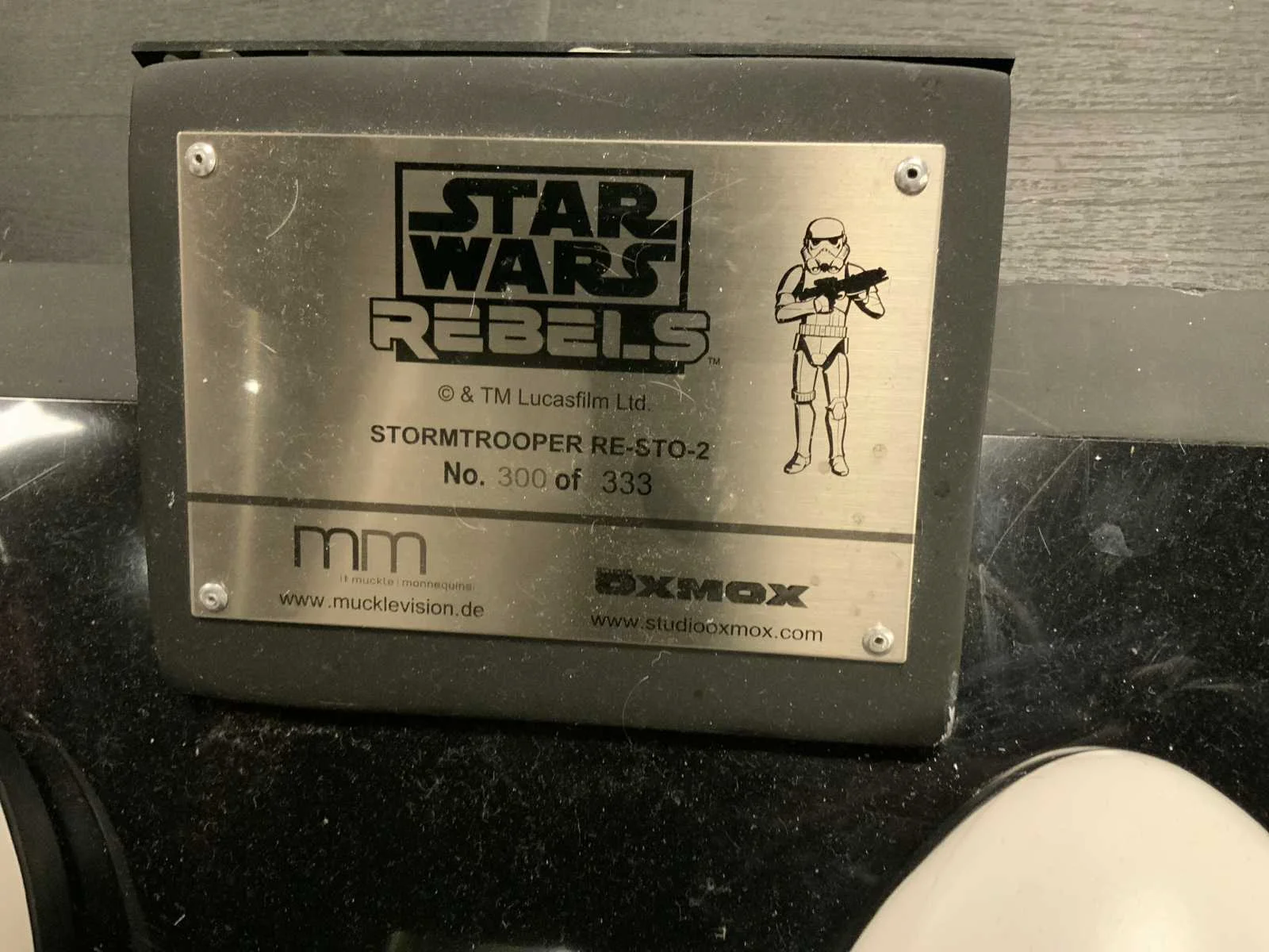 Limited edition 300/333; afmeting totaal circa 85x55x193cm. Merk: Oxmax Model: Stormtrooper 300/333 Materiaal: Kunststof