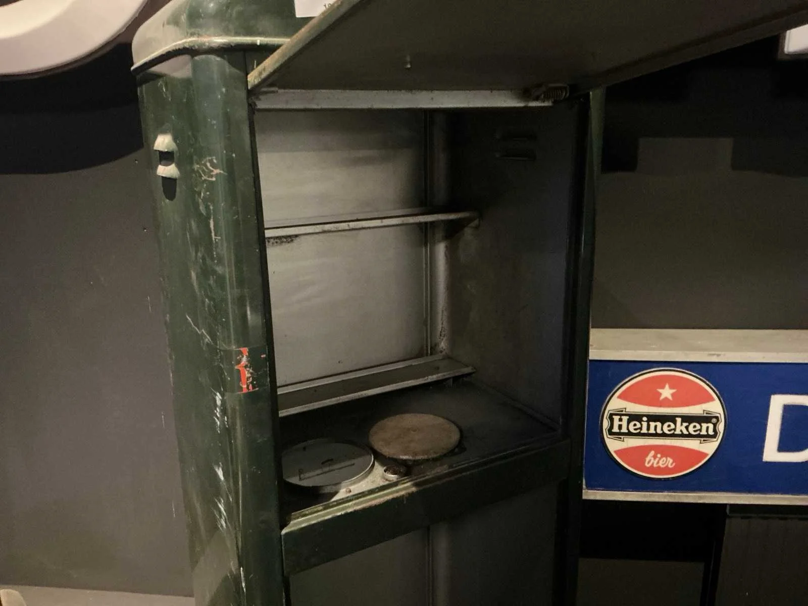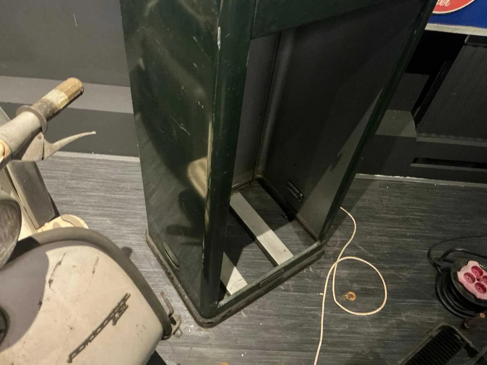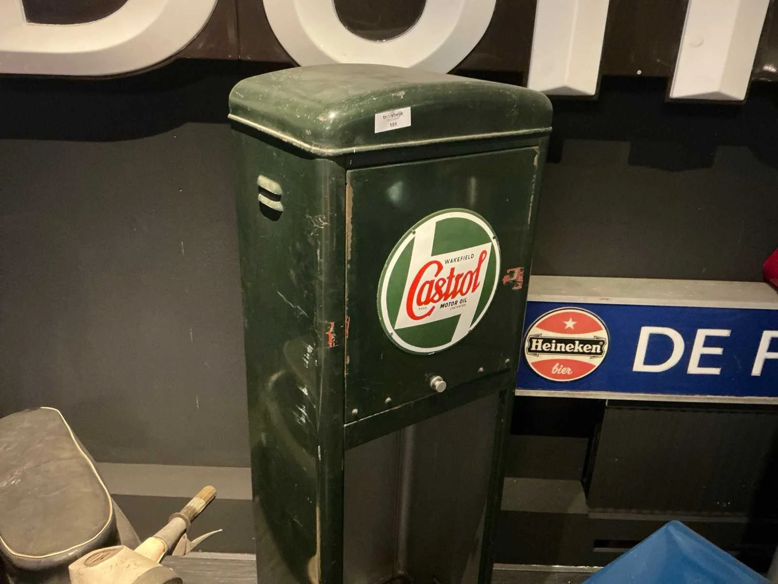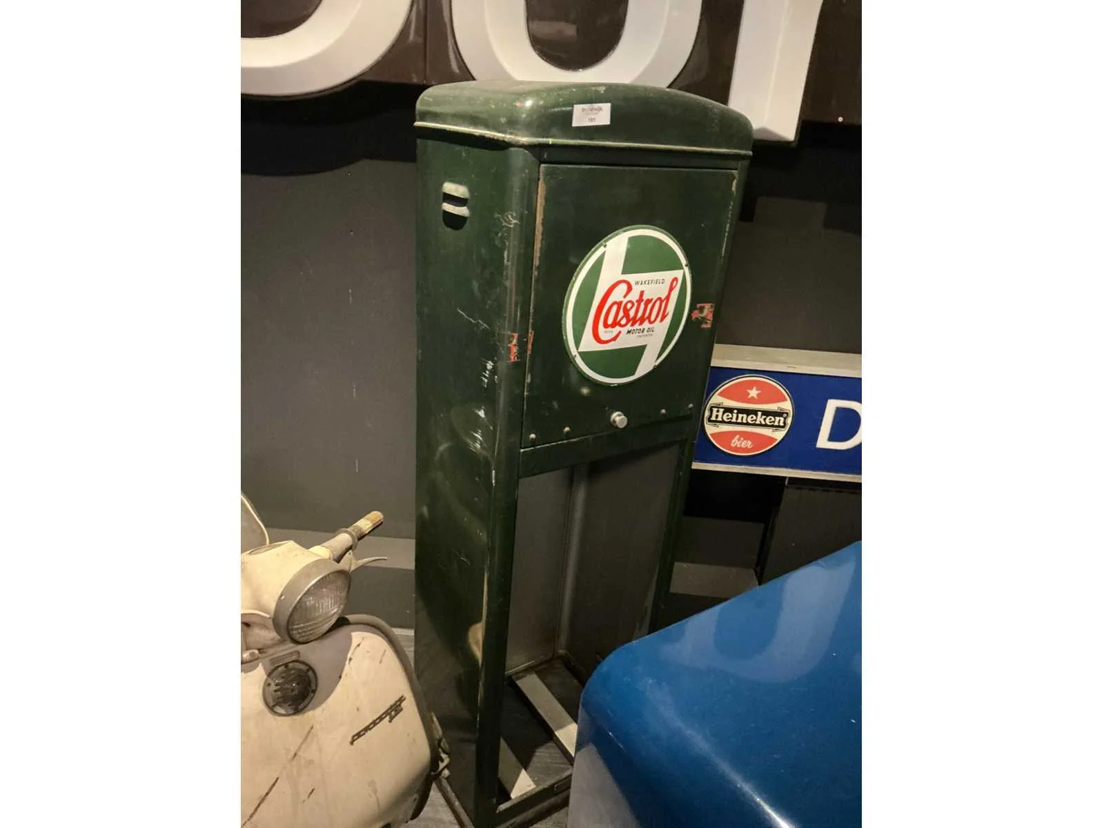 Voorzien van Castrol emaille bord(ø30cm), afmeting totaal circa 55x43x167cm.