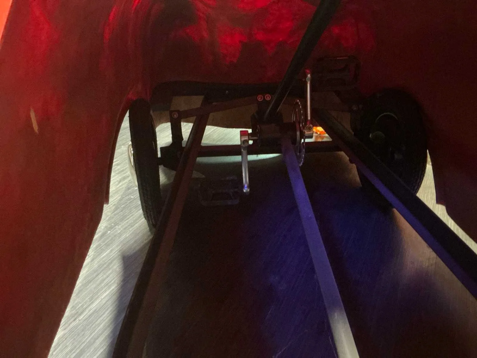 Trapauto Materiaal: Metalen chassis met rode polyester opbouw Model: Sport Hoogte: 87cm Lengte: 210cm Breedte: 68cm