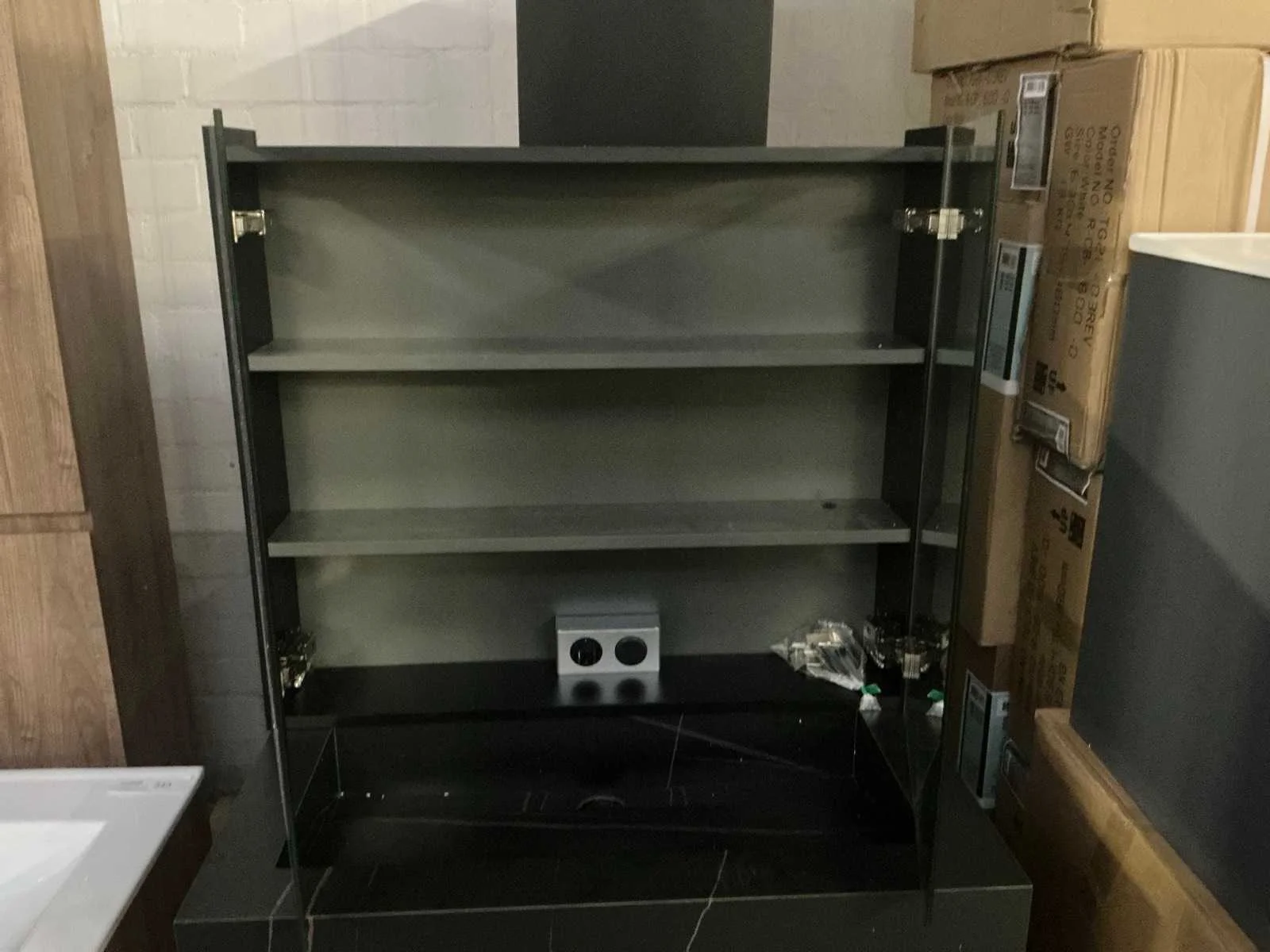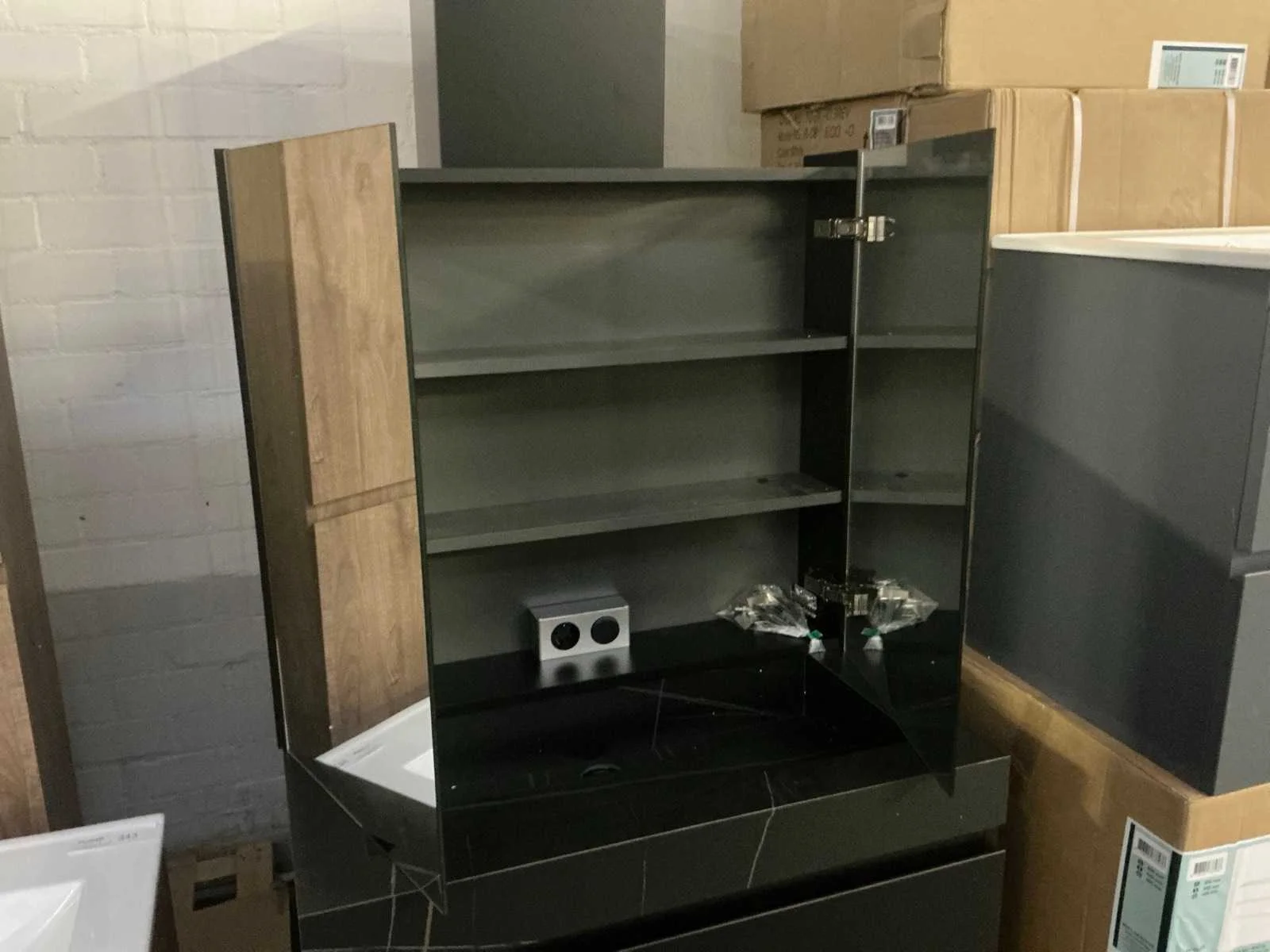 Spiegelkast: true Onderkast: 80x70cm Lades: 2 Zijkast: 35x35x170cm Afmeting hangkast: 80x70cm
