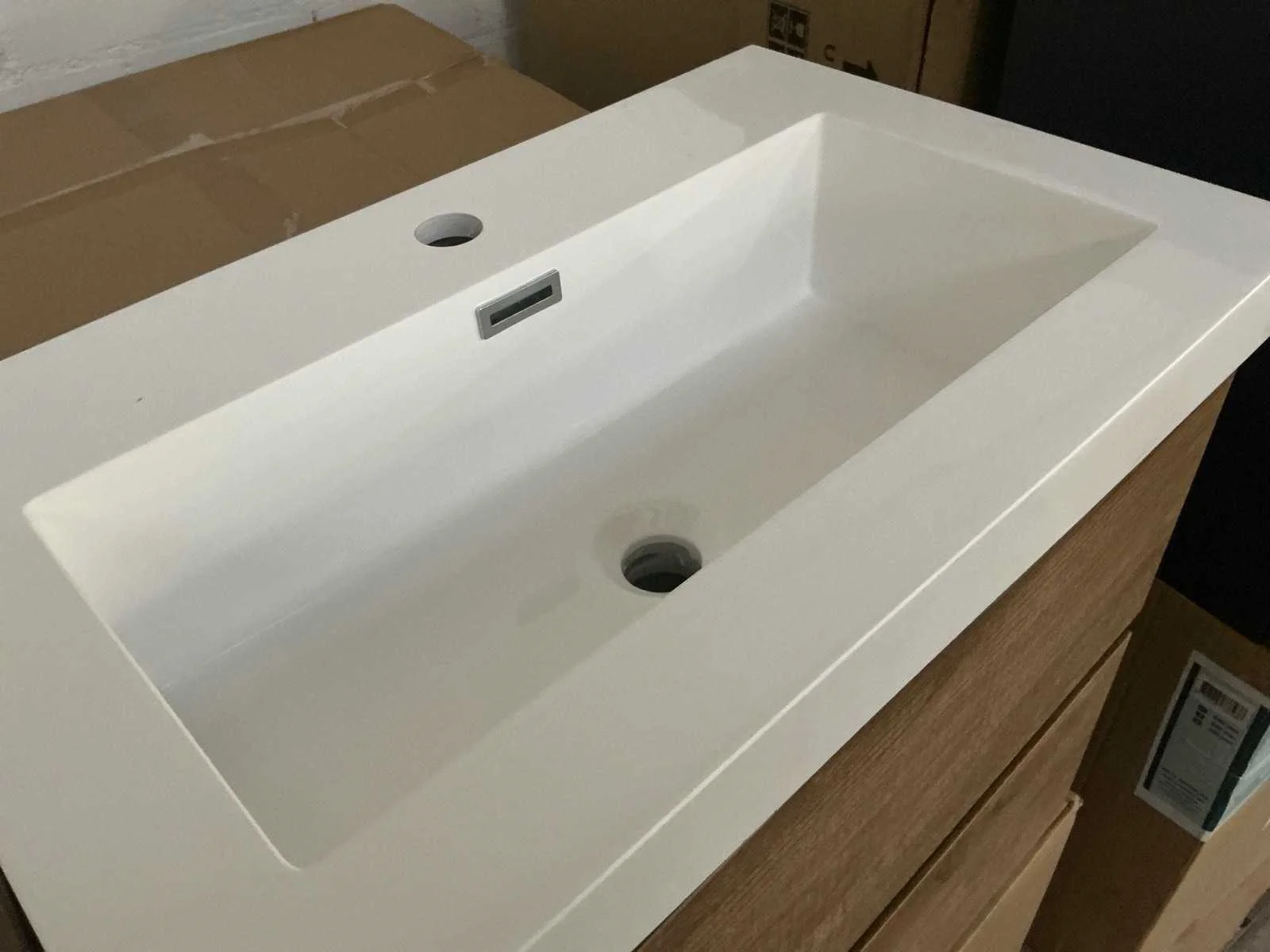 Merk: Revital Hoogte: 60cm Lengte: 60cm Breedte: 46cm Materiaal: Hout Kleur: Oak Wastafel: Kunststeen Lades: 2 Softclose: true