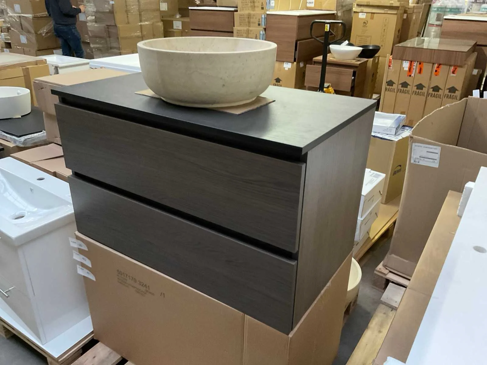 Bestaande uit meubel voorzien van 2 laden en waskom ø ca. 40 cm Hoogte: 54cm Lengte: 90cm Breedte: 50cm Waskom: Ja Onderkast: Ja Lades: 2