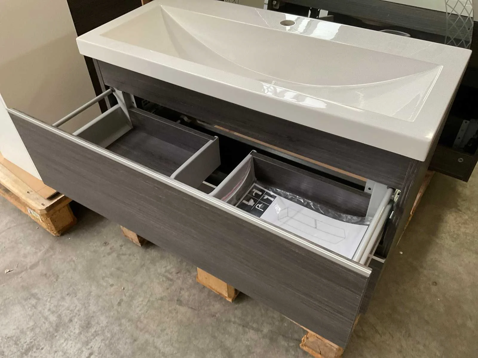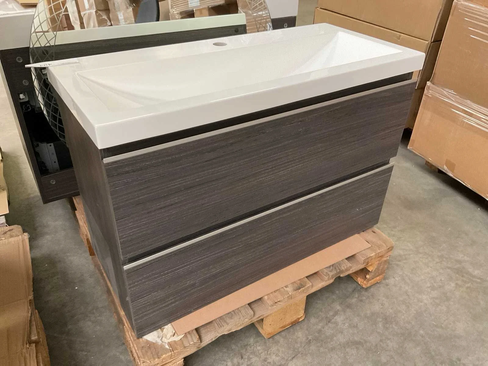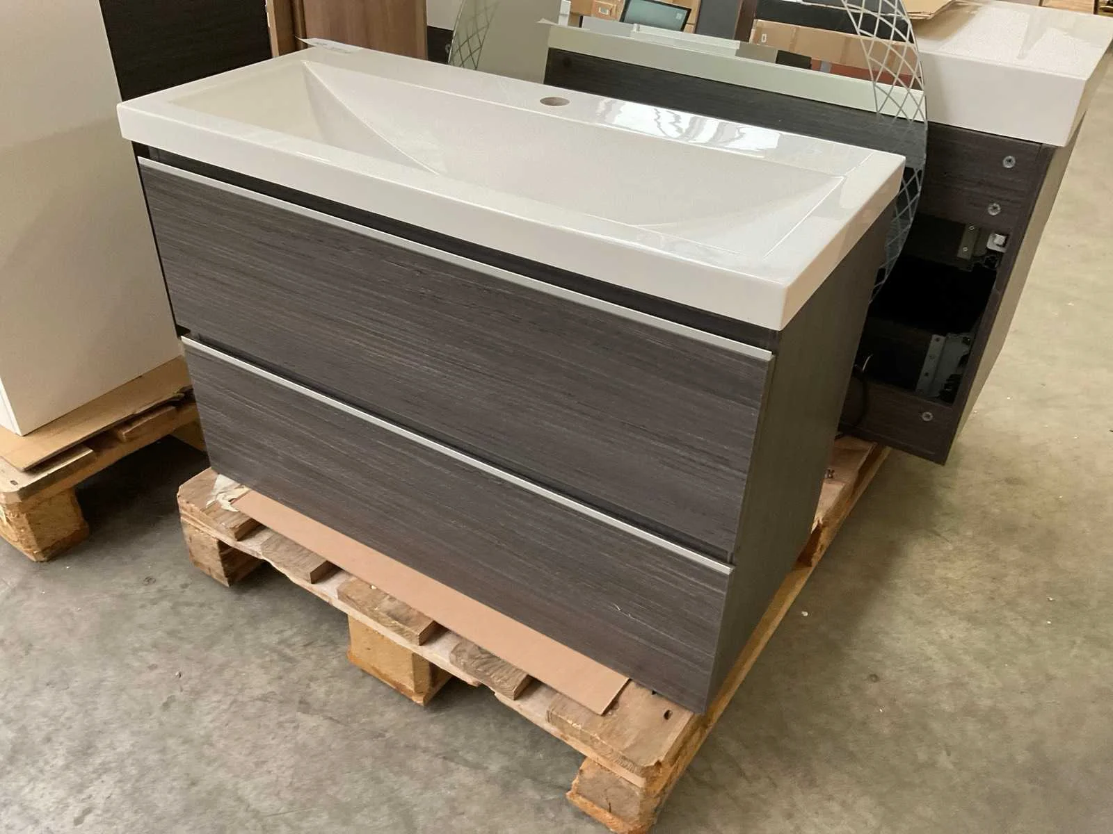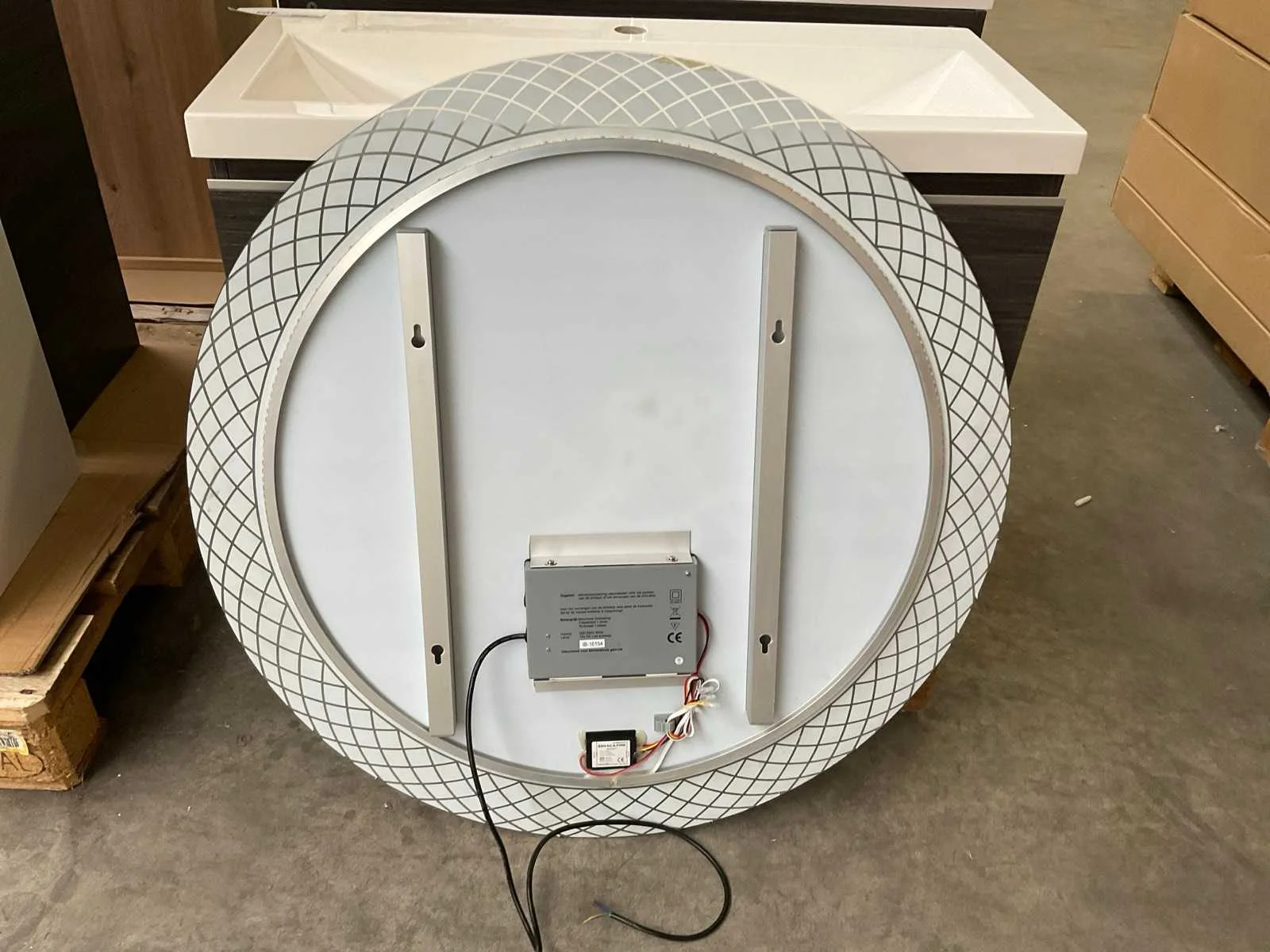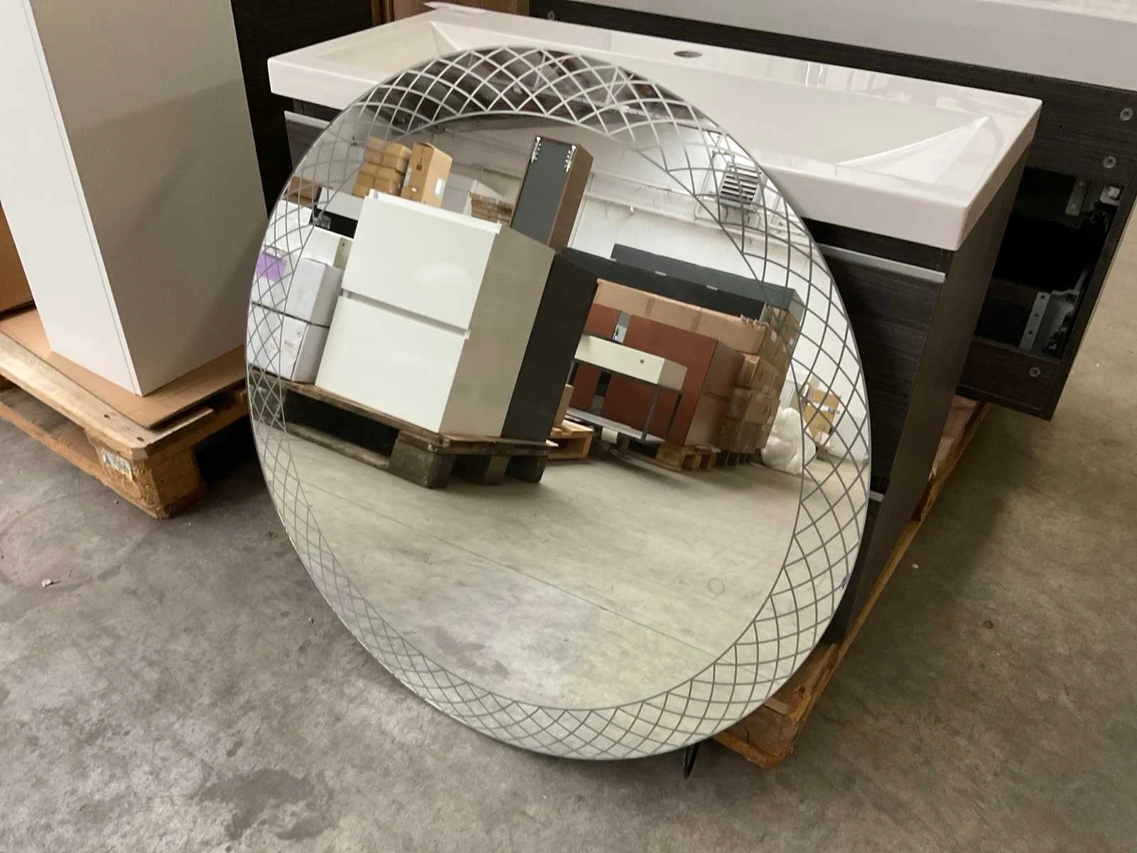 Voorzien van 2 laden Met ronde spiegel afm ø ca. 80 cm voorzien van ledverlichting Lengte: 80cm Breedte: 3654cm