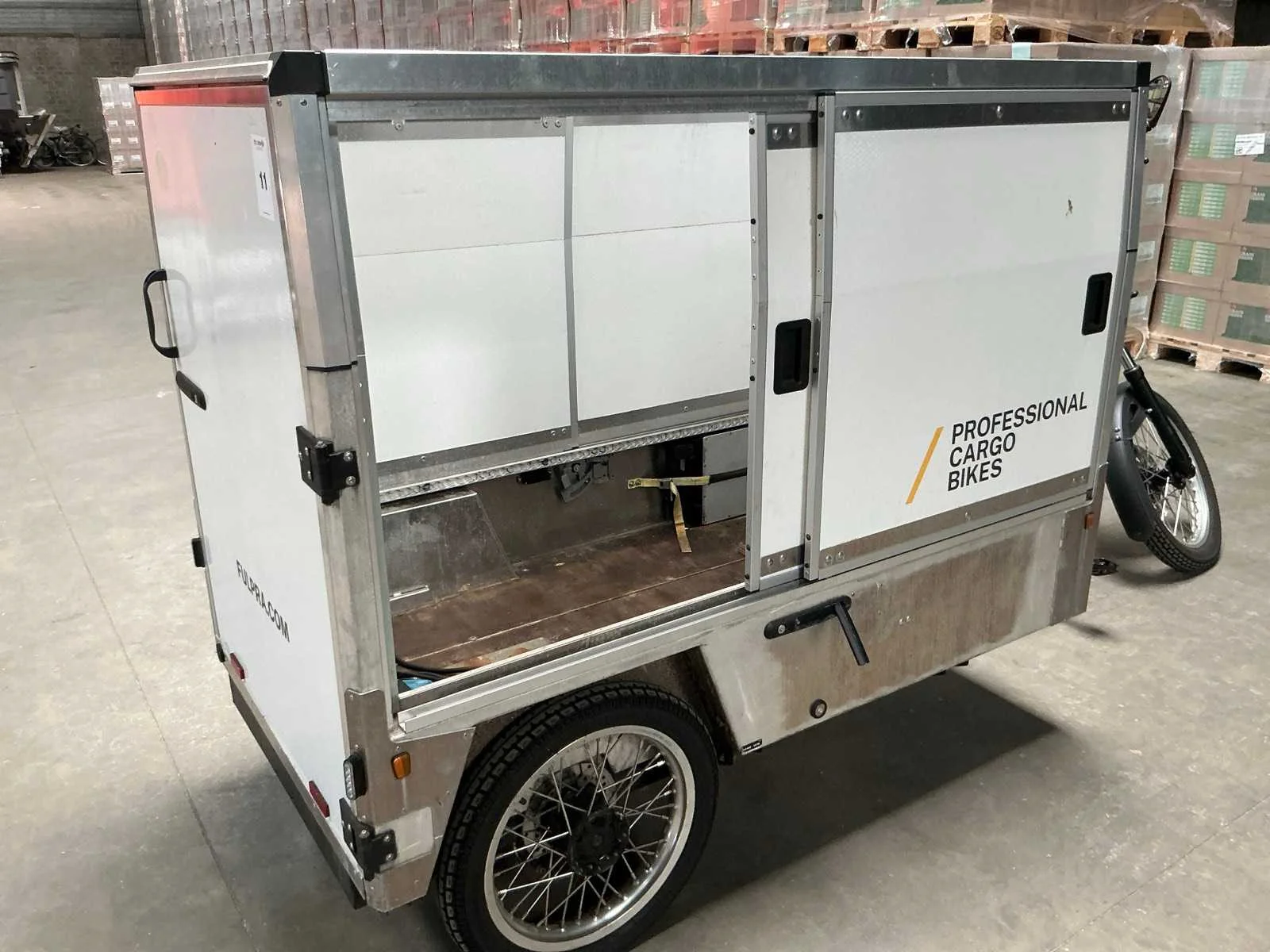 Afmeting bak: 180x95x125cm. Serienummer: AF-033 Merk: Fulpra Model: E-Cargo 2000L Afgelezen kilometerstand: 5642km Oplader getest: Nee Accu getest: Nee Voorvering: true Framemaat: 50