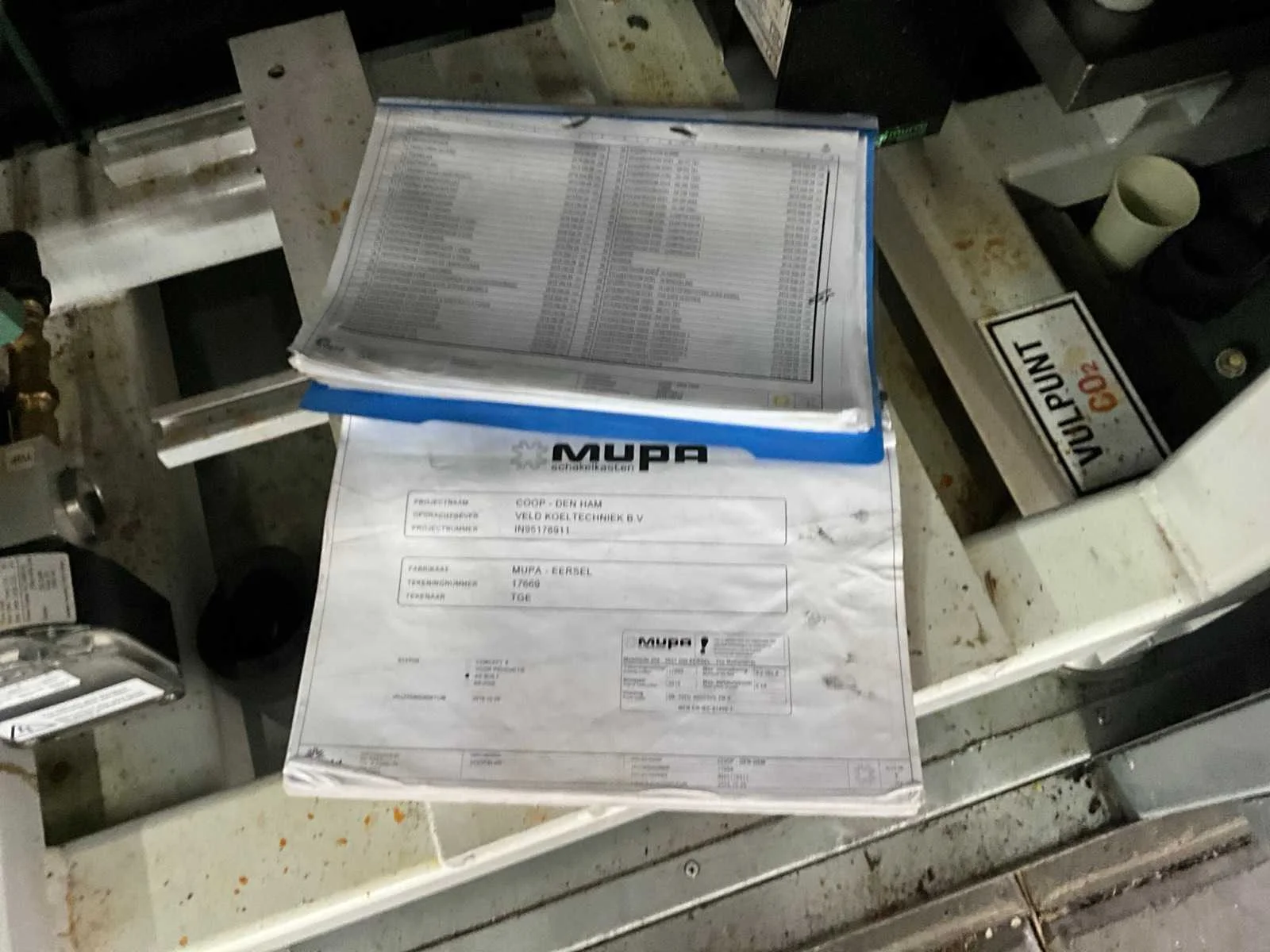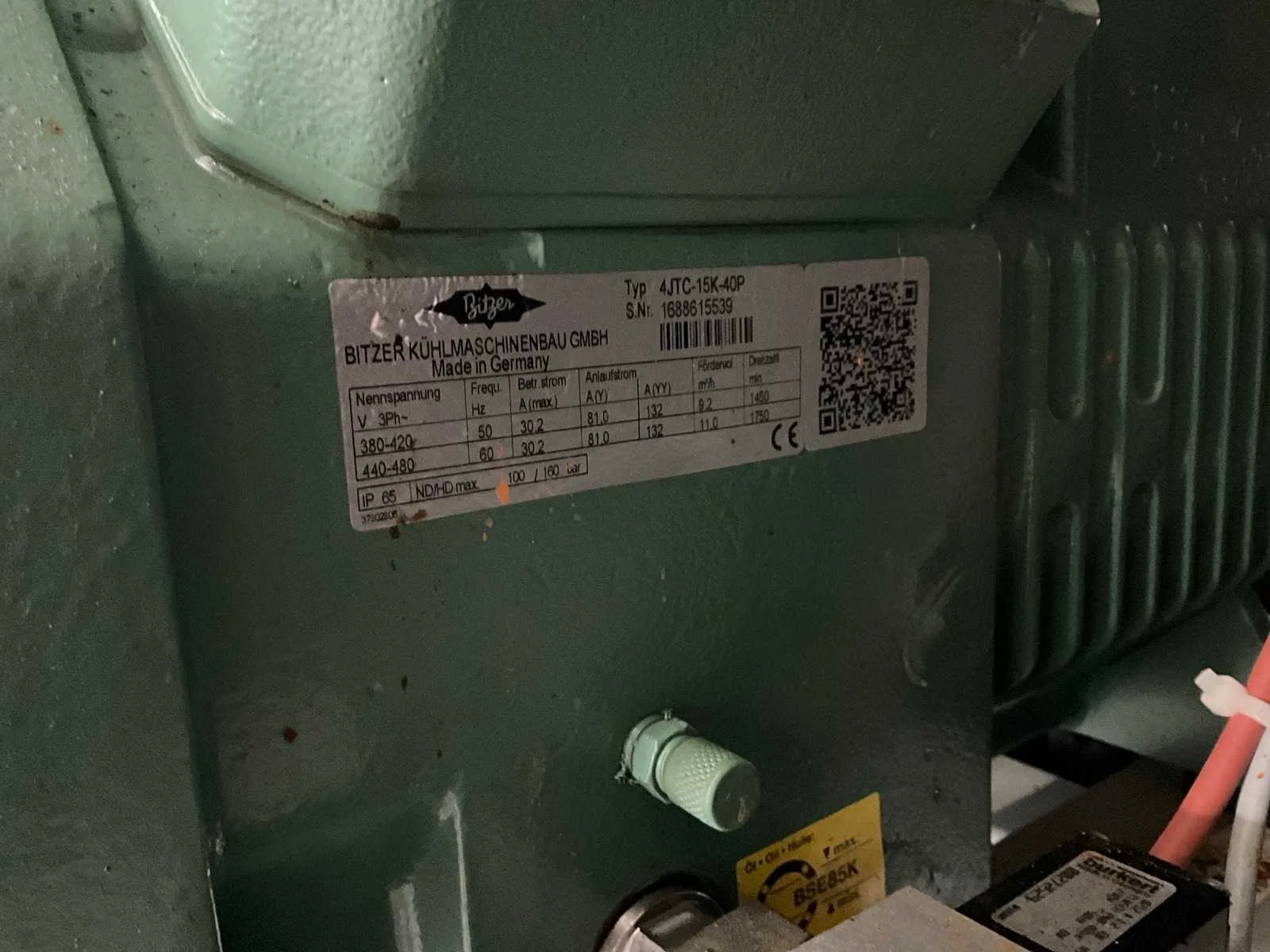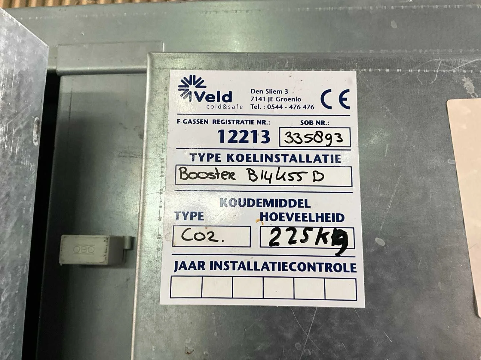 Merk: Veld Aansluiting: 400V Type koudemiddel: R 744 Totale afmeting Hoogte: 2360mm Totale afmeting Breedte: 3850mm Totale afmeting L: 1600mm Vermogen: 51kW Type: Booster B14kss B 51kW Bouwjaar: 2015