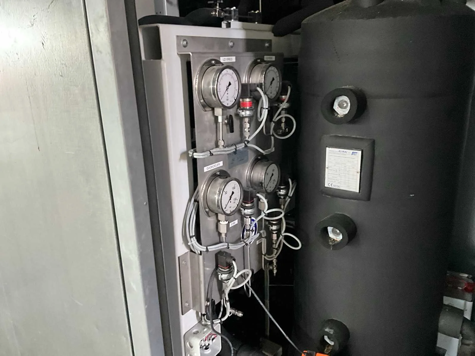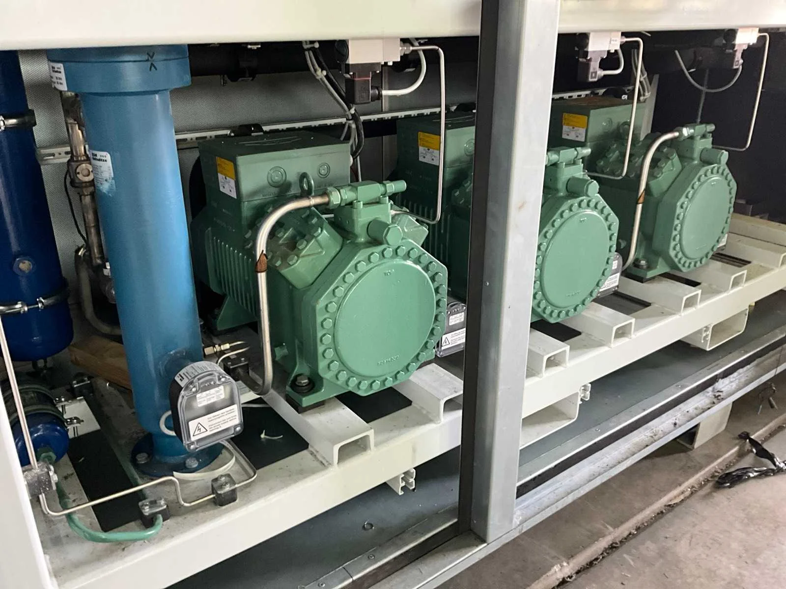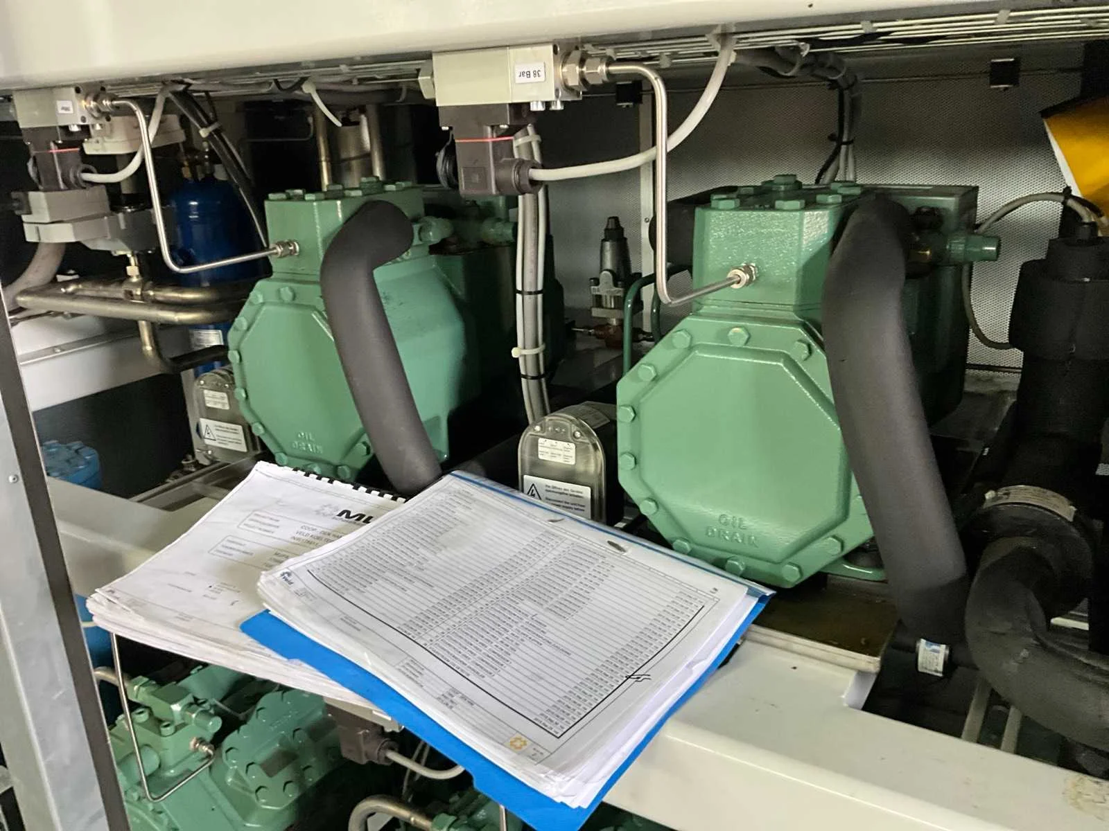 Merk: Veld Aansluiting: 400V Type koudemiddel: R 744 Totale afmeting Hoogte: 2360mm Totale afmeting Breedte: 3850mm Totale afmeting L: 1600mm Vermogen: 51kW Type: Booster B14kss B 51kW Bouwjaar: 2015