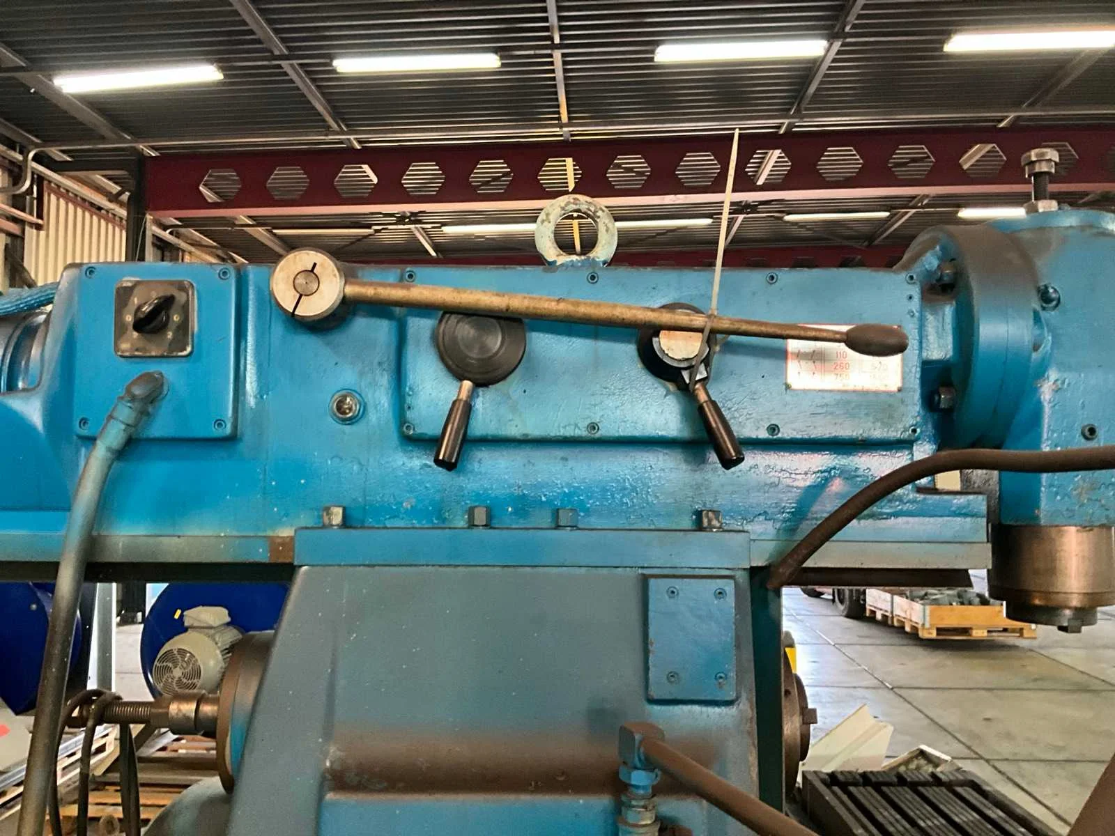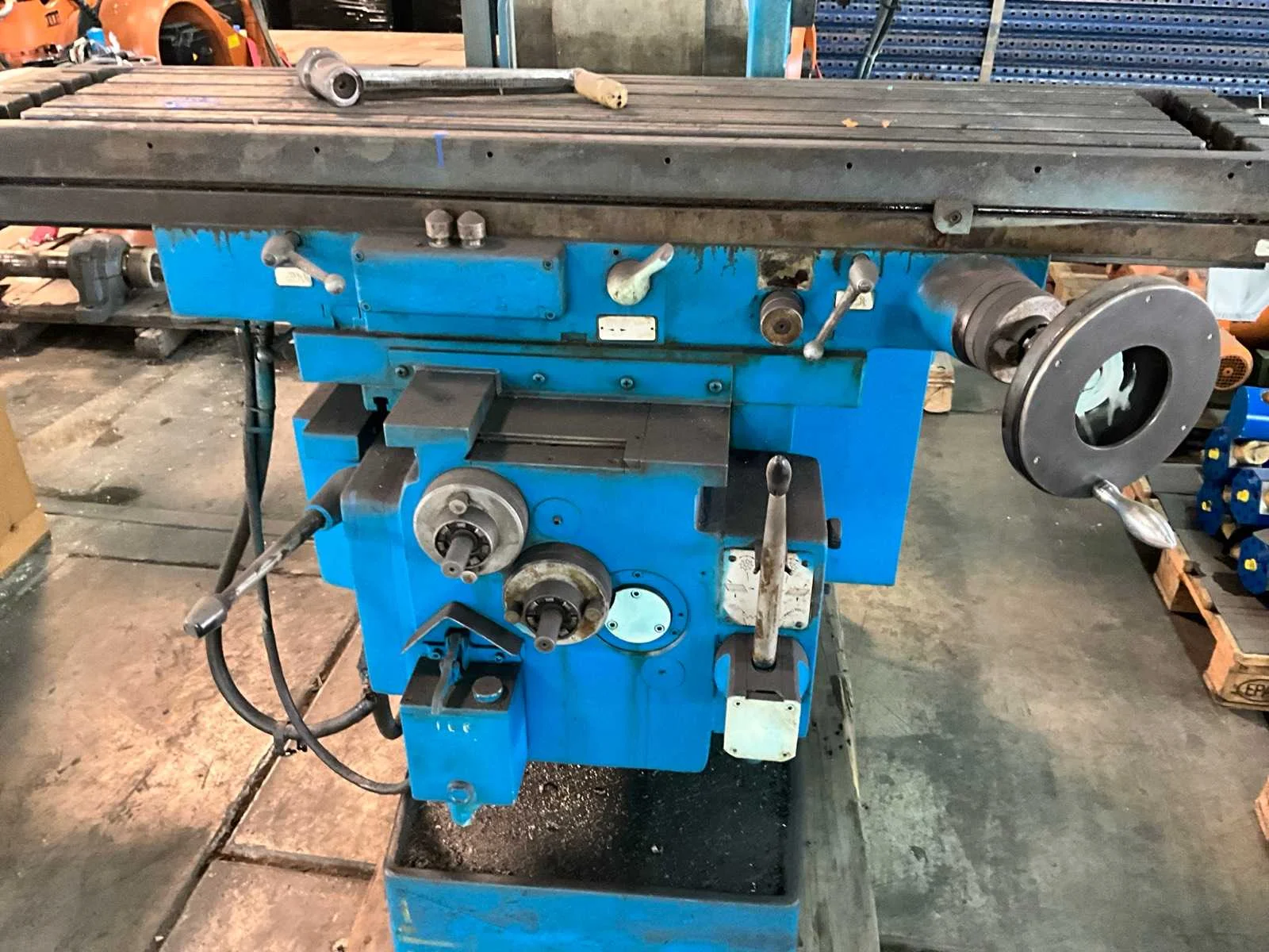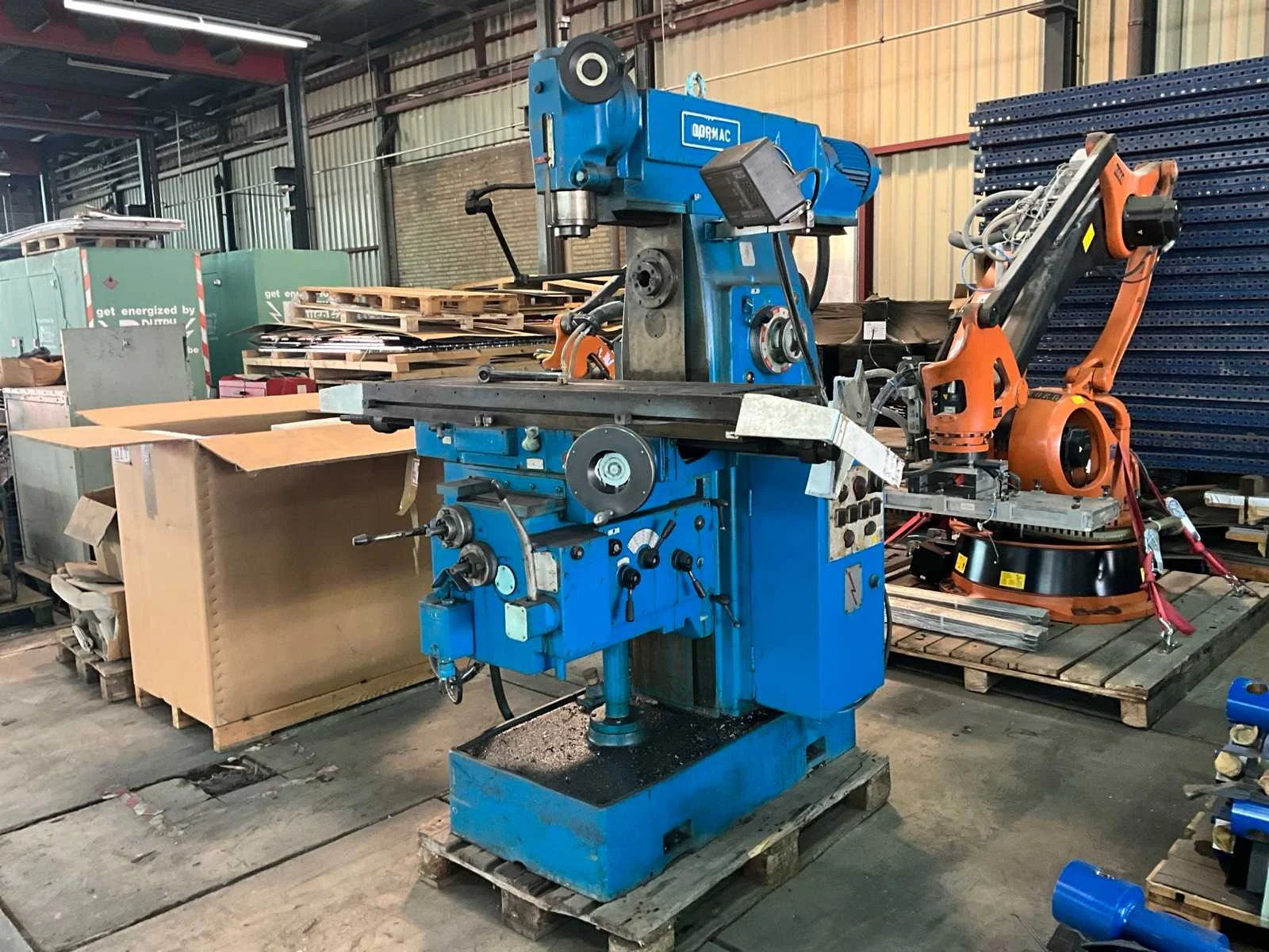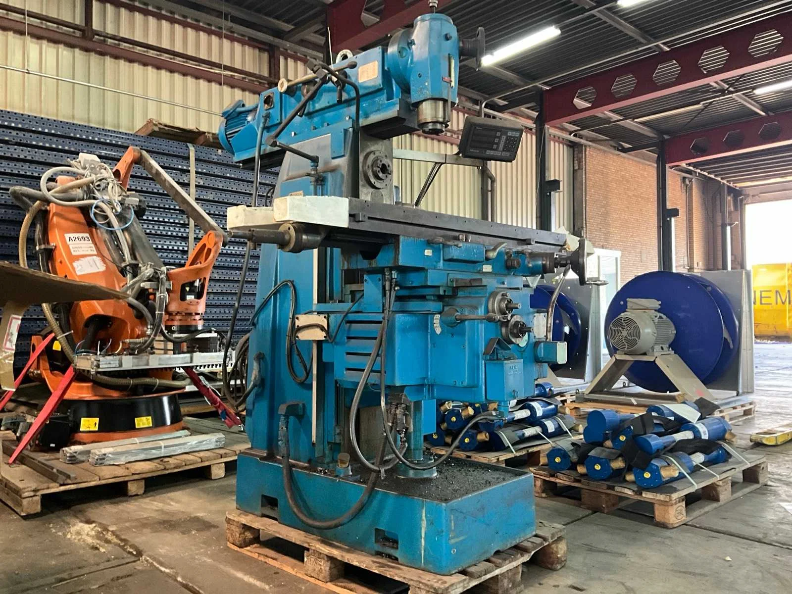 Merk: Dormac Type: FU-120 Bouwjaar: 1978 Verplaatsing x-as: 950mm Verplaatsing y-as: 400mm Verplaatsing z-as: 600mm Opname: 40 mm Aantal snelheden: 8 Snelheid van n =: 38rpm Snelheid tot n =: 1500rpm T-gleuf opspantafelafmeting L: 1300mm T-gleuf opspantafelafmeting B: 300mm Besturing, merk, type: Mitutoya Aansluiting: 400V Afmeting l: 1850mm Afmeting b: 1750mm Afmeting h: 2100mm