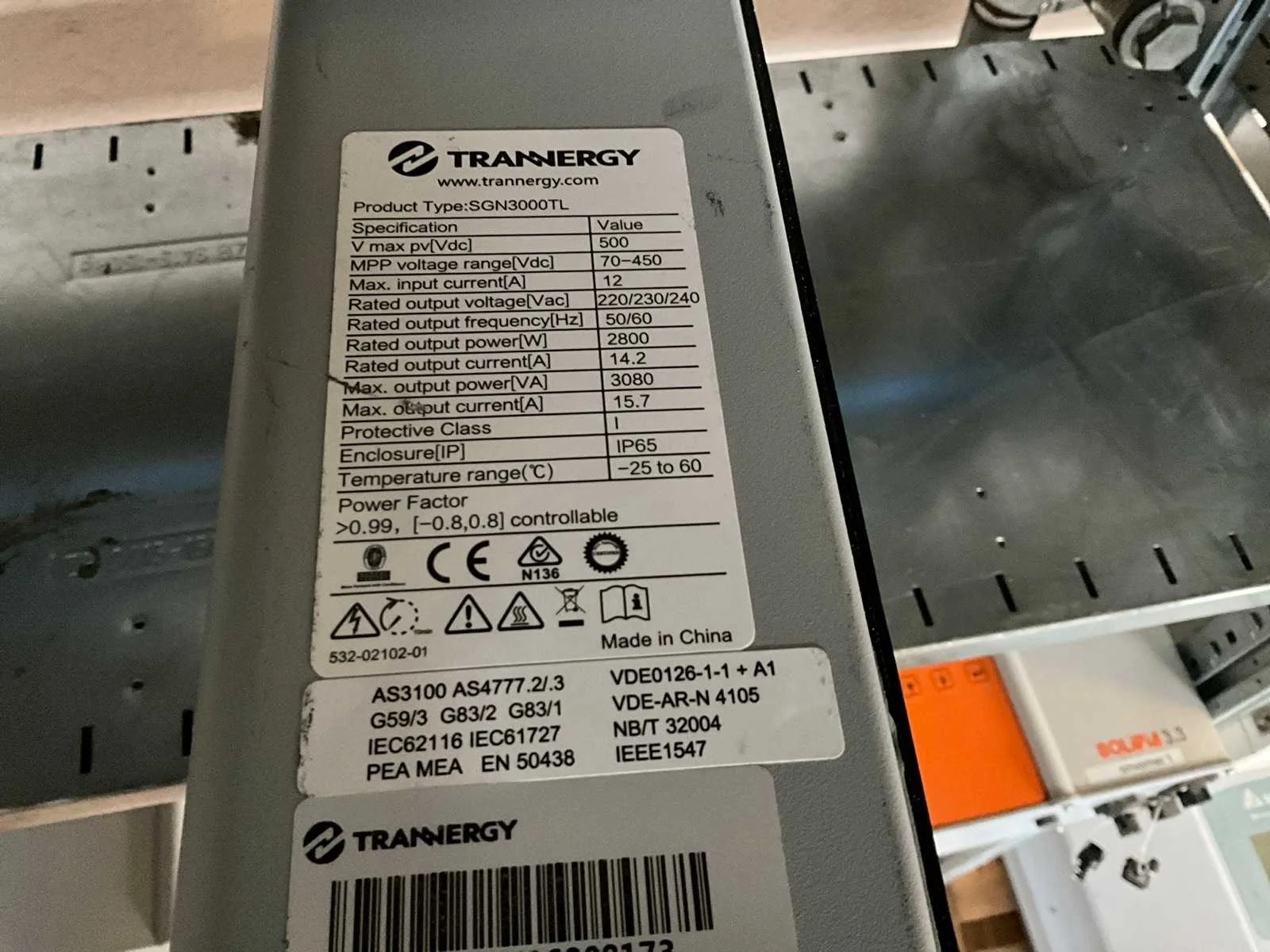 Waarvan 1x type: SGN2300TL, 2 kW Merk: Trannergy Type: SGN3000TL Vermogen: 2.8kW