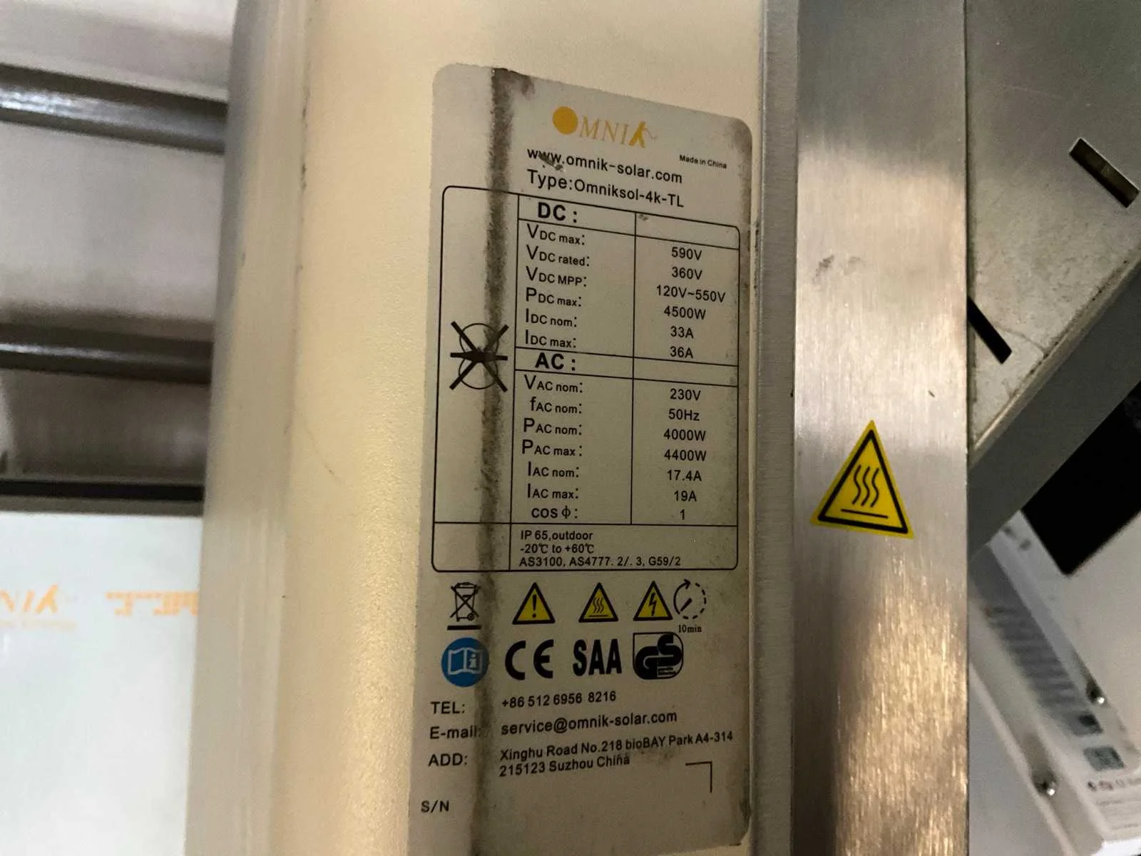 Waaronder type: 4K-TL. Inclusief 1x “IBC Solar” type SB 2100TL Merk: Omnik