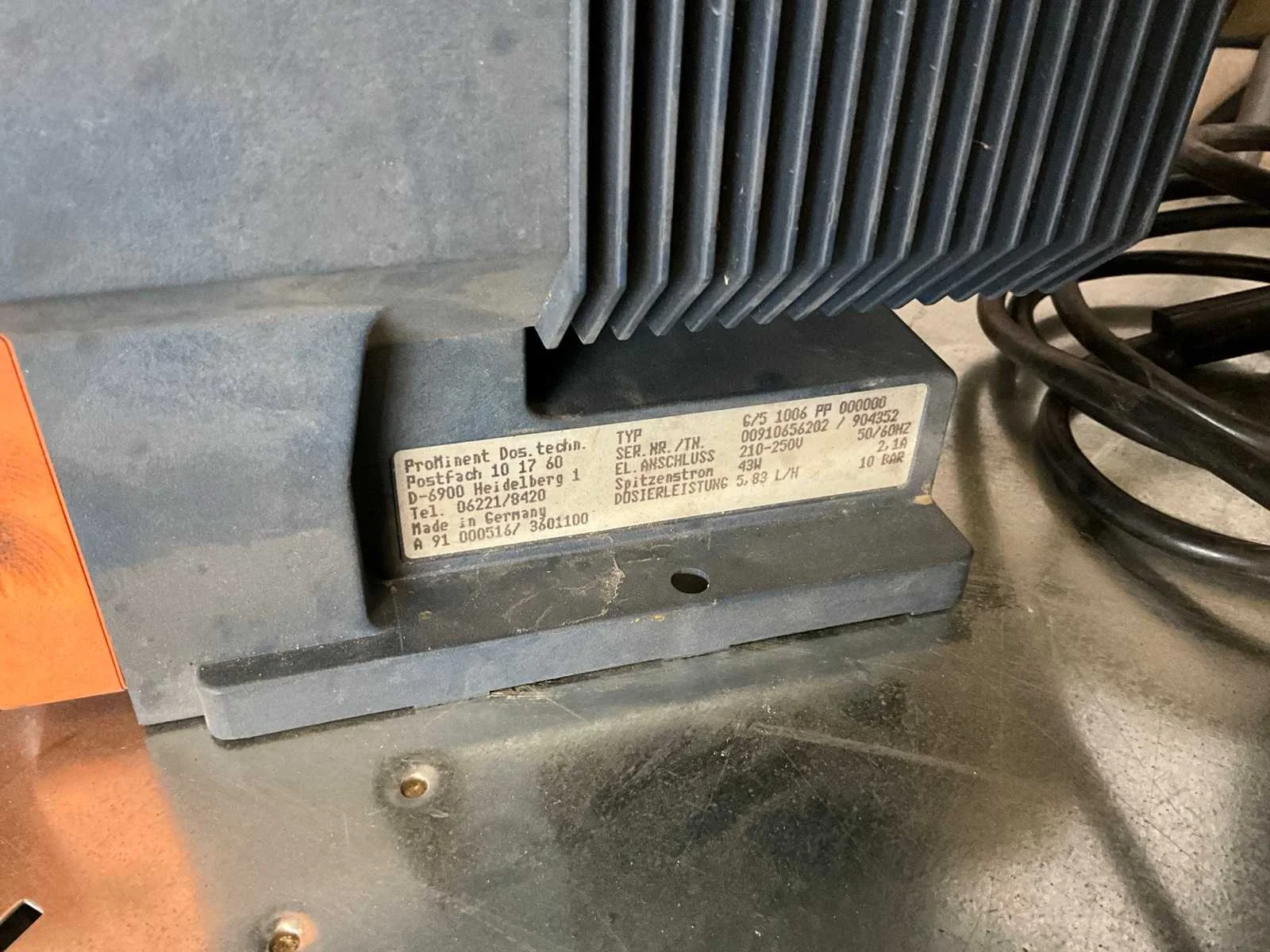 Merk: ProMinent Type: gamma/5 Capaciteit.: 5.8l/hr Aansluiting: 230V