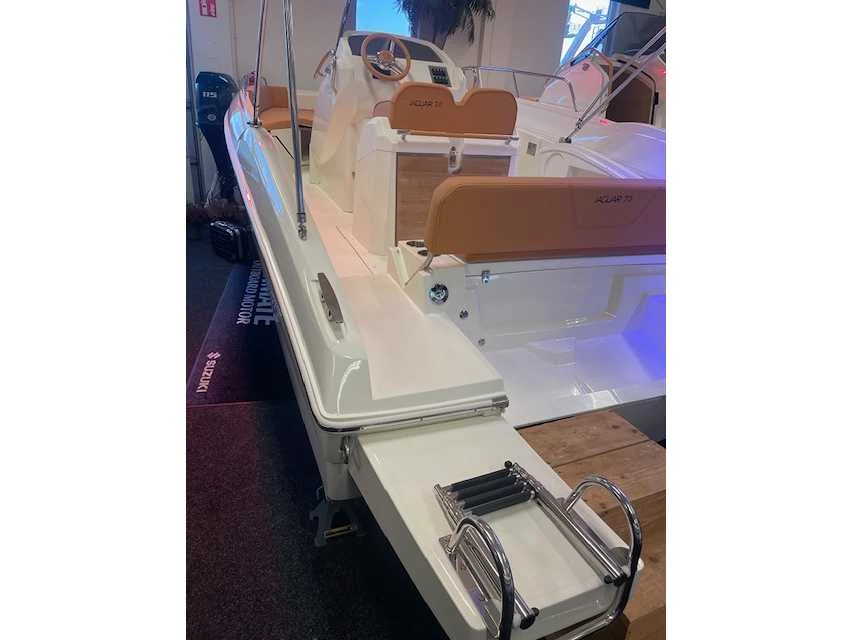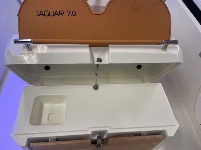 Voorzien van kussens; zonnebed; zwemtrap; bilgepomp; wasbakvoorbereiding; watertank; navigatieverlichting; electrische ankerlier; biminitop; hydraulische besturing. LET OP! Ophalen louter op afsraak via email naar: info@tigermarinecenter.nl Merk: Prua Alvento Type: Jaguar 7.0 NIEUW 2024 Rompmateriaal: Polyester Bouwjaar: 2024