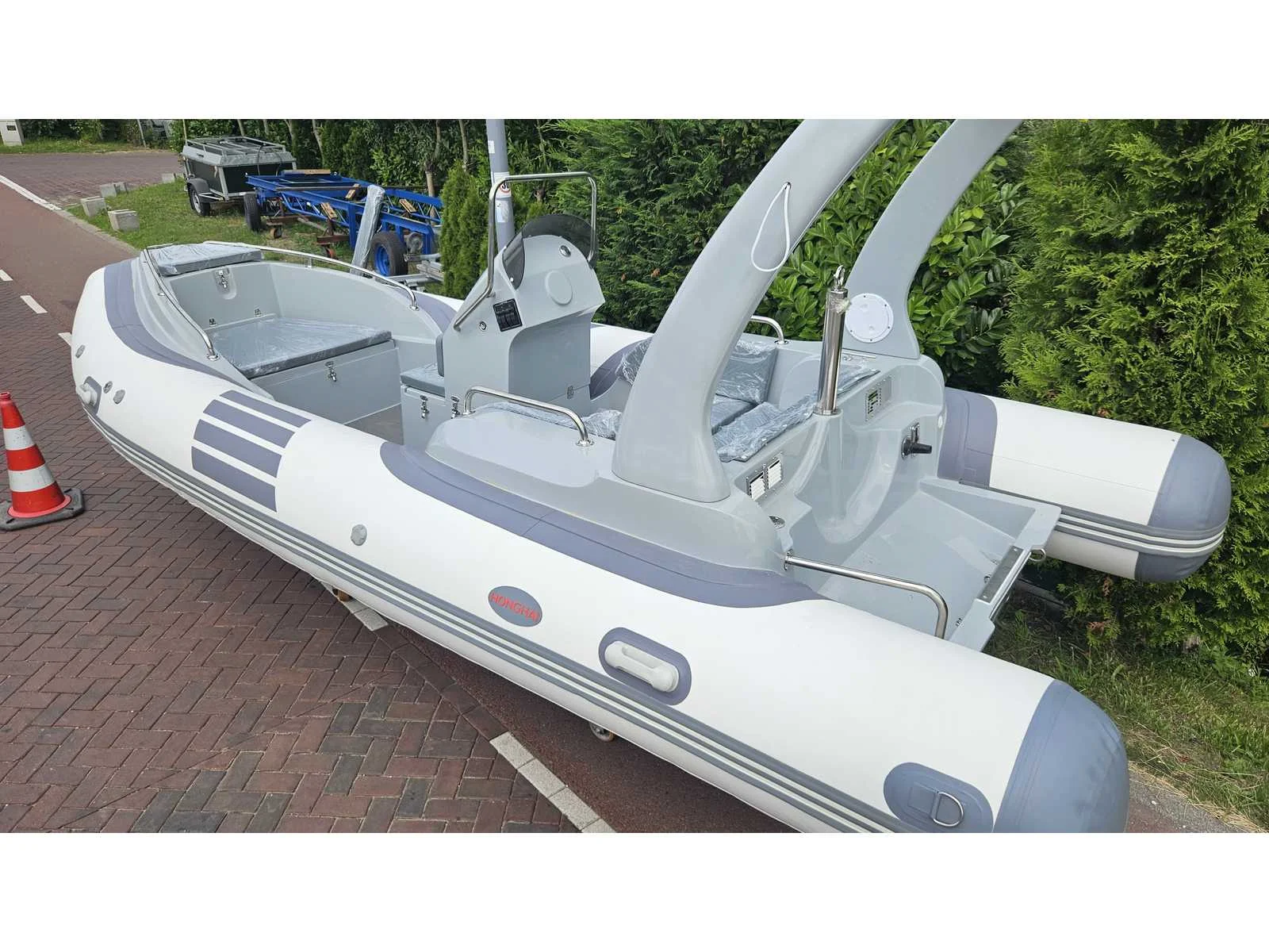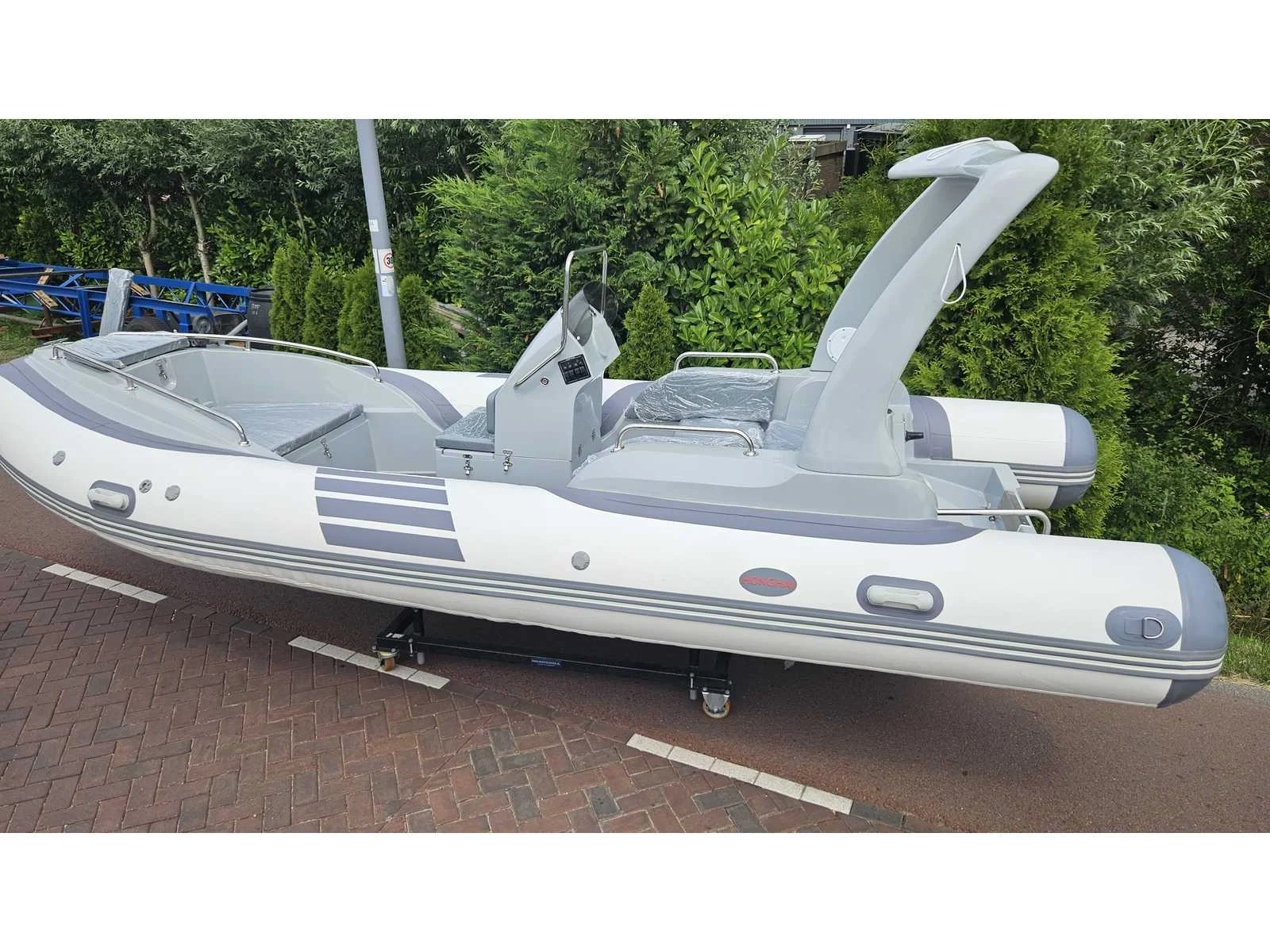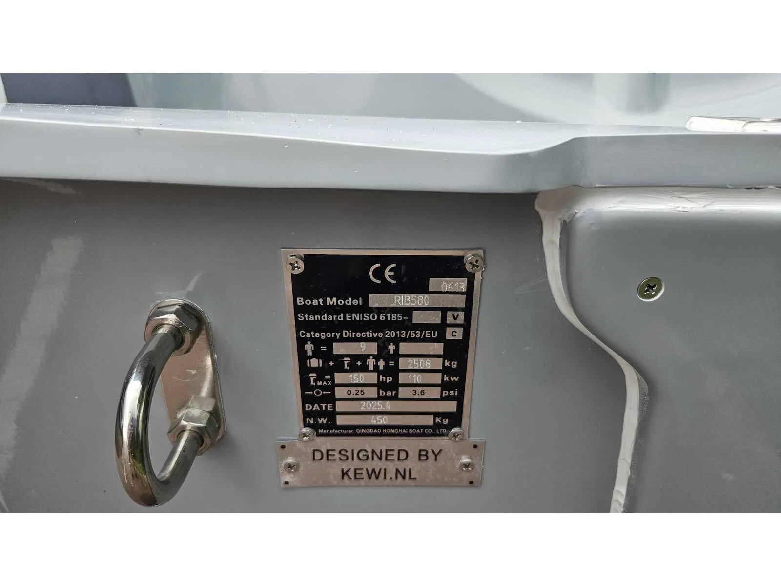 Radar beugel, zonnebed, bradnstof tank, ski paal, foam dek vloer, pvc dikte 1,2 mm, maximaal 150 pk motor LET OP! Transportbok niet inbegrepen! Ophalen louter op afsraak via email naar: info@tigermarinecenter.nl Merk: Hong hai Model: 580 Lengte: 5.8m