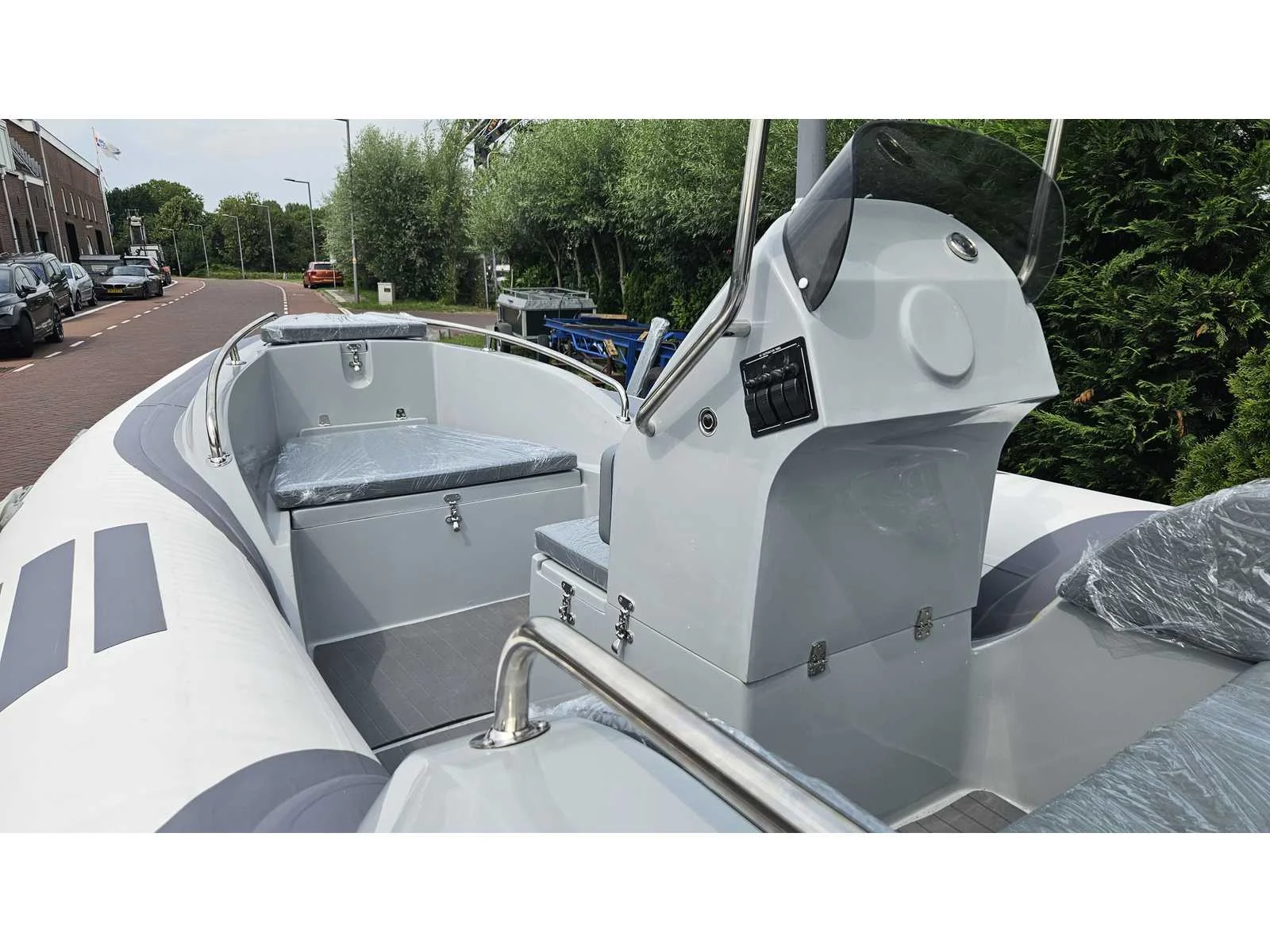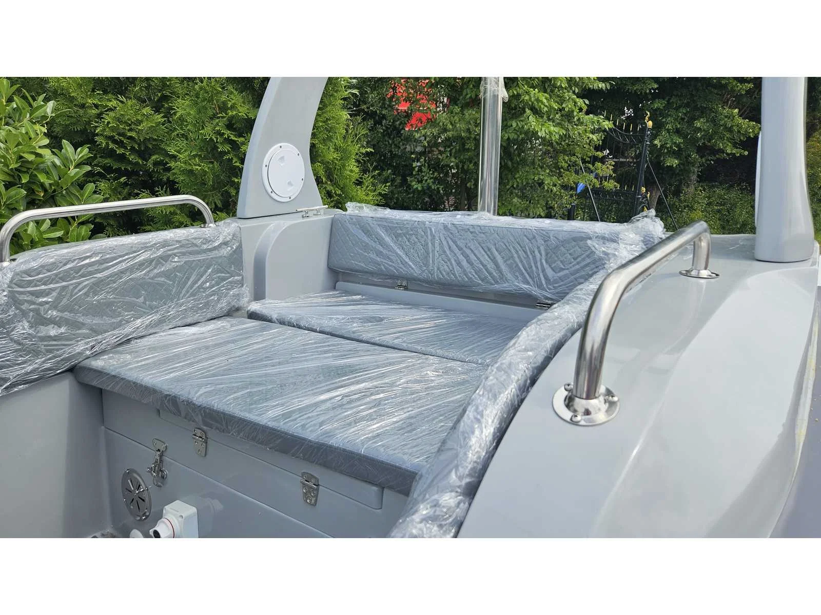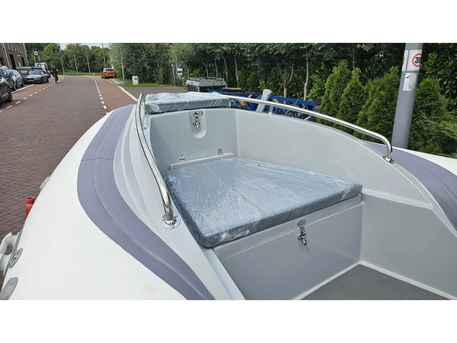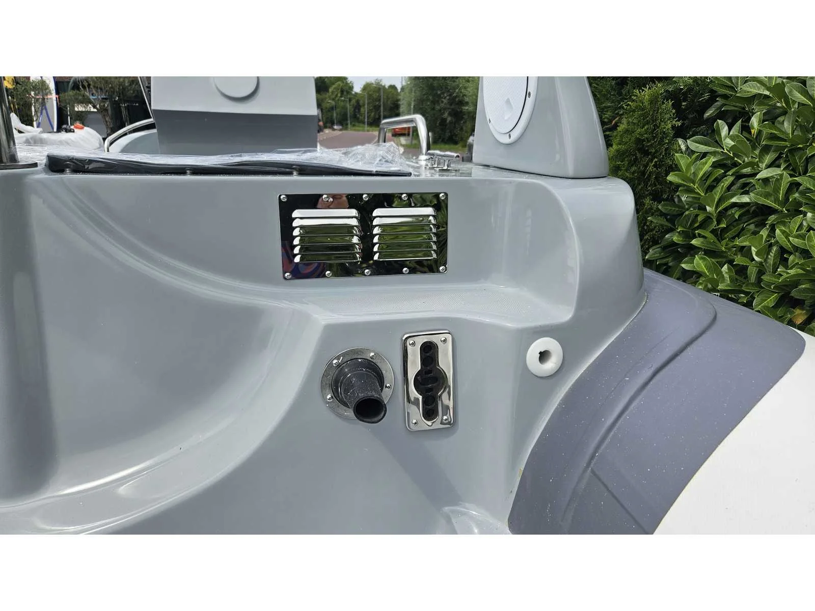 Radar beugel, zonnebed, bradnstof tank, ski paal, foam dek vloer, pvc dikte 1,2 mm, maximaal 150 pk motor LET OP! Transportbok niet inbegrepen! Ophalen louter op afsraak via email naar: info@tigermarinecenter.nl Merk: Hong hai Model: 580 Lengte: 5.8m