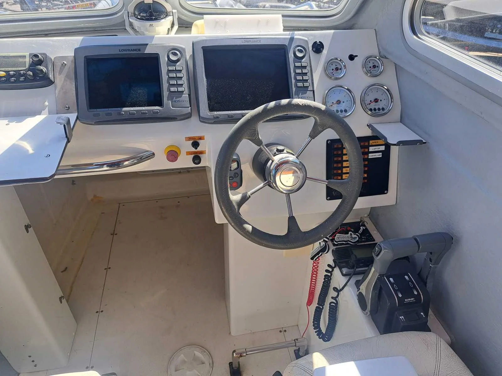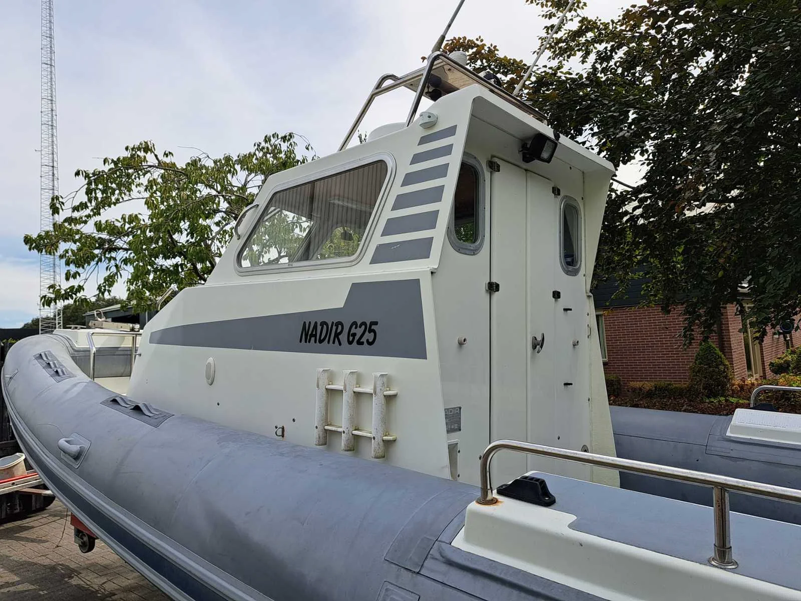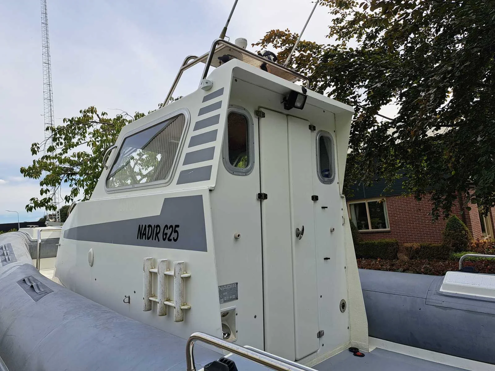 Nadar G 25 Rib boot hypalon tubes 2x suzuki 140 pk buitenboordmotor CE caregorie B afsluitbare kajuit met verwarming en ruitenwissers lowrance HDS 10 lowrance HDS 8 marifoon, kompas, elektrische ankerlier,hydraulische besturing motoren hebben dit jaar onderhoud gehad draai uren motoren 240 uur trailer Riba 3500 kg stallings trailer geen kenteken registratie electrische lier op trailer. LET OP! Ophalen louter op afsraak via email naar: info@tigermarinecenter.nl Merk: Nadar Model: G 25 Aantal motoren: 2 Rompmateriaal: Polyester Merk motor: Suzuki Brandstof: benzine Bouwjaar: 2006 Aantal hutten: 1