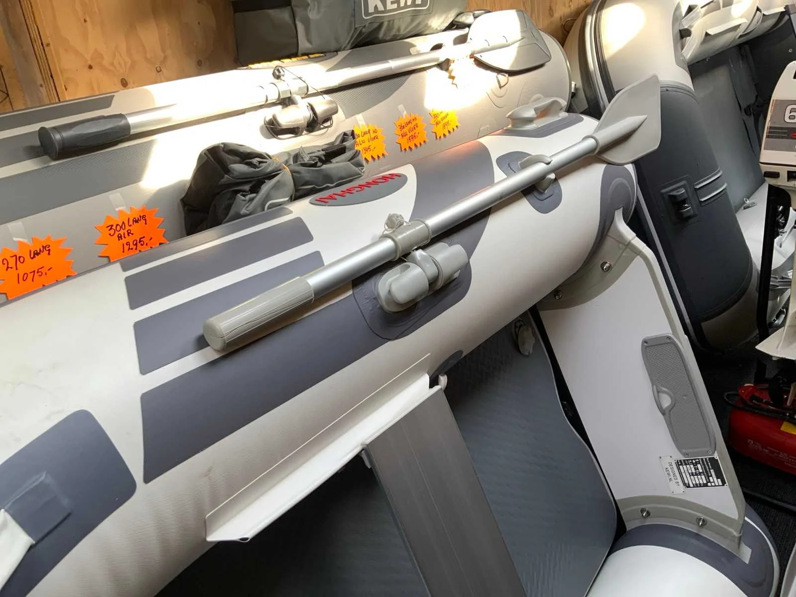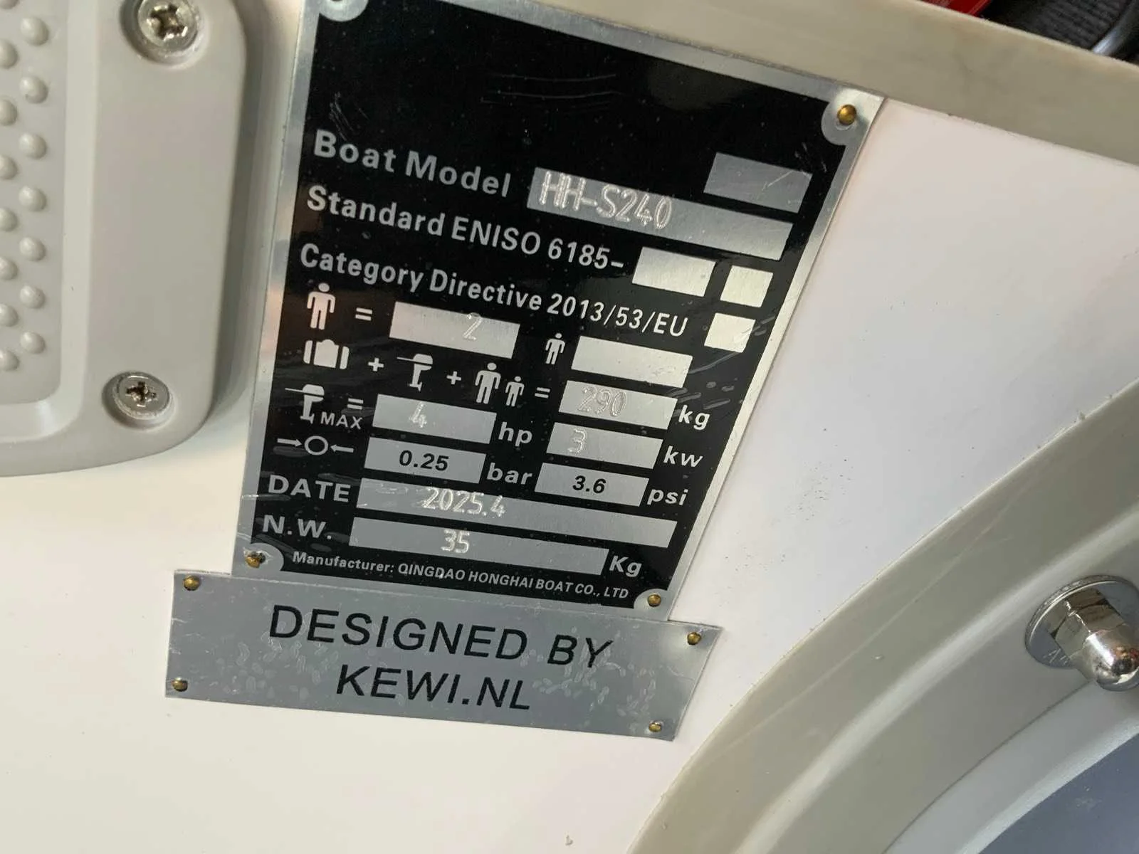 240 lang voorzien van lucht bodem, wordt nieuw in doos geleverd, foto ter illustratie Merk: Honghai Type: HH-S240 Lengte over alles: 2.4m Kleur: wit / grijs