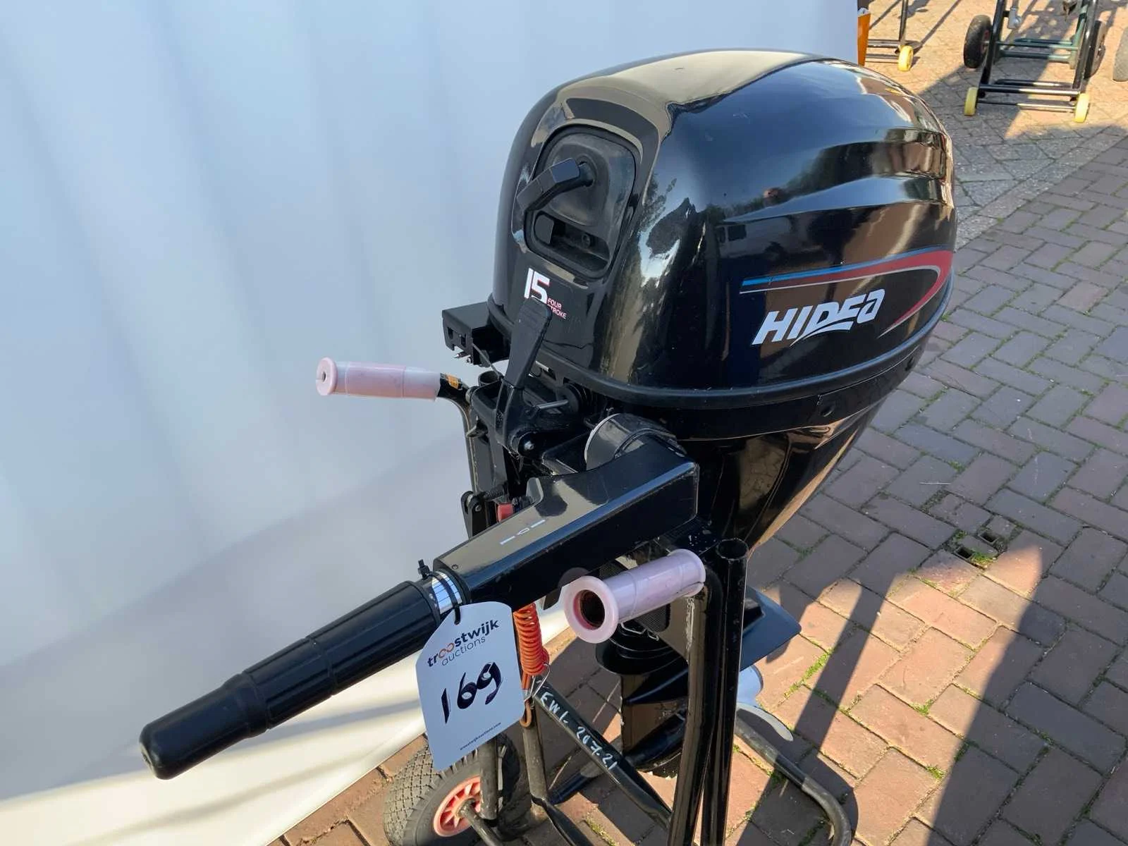 Hidea 15 pk kortstaart, handstart ,gebruikt , werking onbekend Merk: Hidea Type: HDF 15 Brandstof: benzine 4-takt Vermogen: 15hp Gewicht: 49.5kg