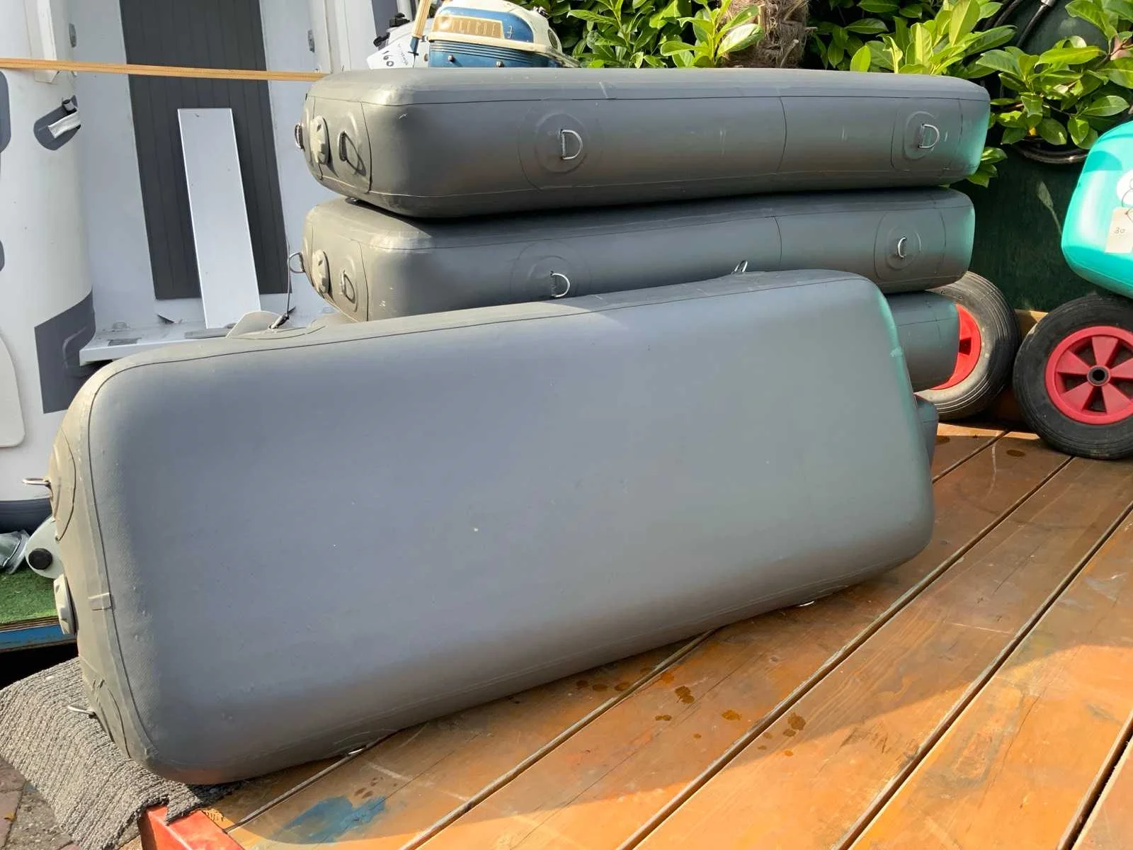 5x opblaasbaar stoot kussen incl montage ogen Kleur: grijs Lengte: 127cm Breedte: 53cm Hoogte: 20cm Materiaal: rubber