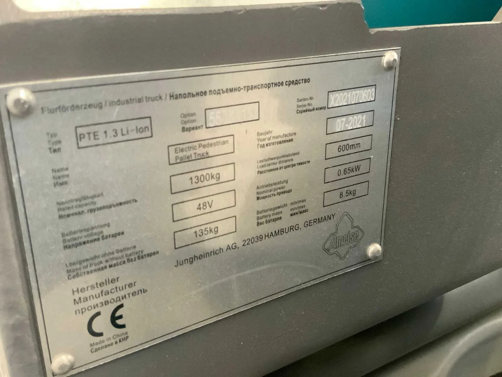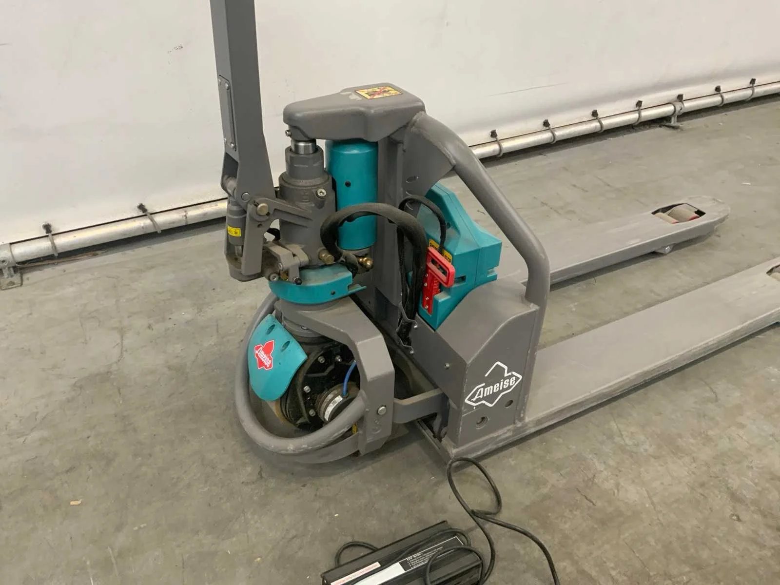Inclusief lader; type accu Li-ion DZL482001-Q00; inclusief extra batterij; Merk: Ameise Type: PTE 1.3 Li-Ion Bouwjaar: 2021 Hefvermogen: 1300kg Lepellengte: 1150mm Accu lader: true