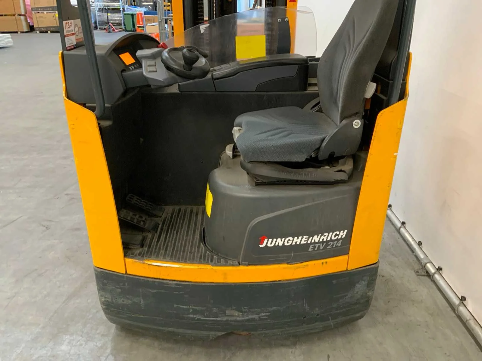 Batterij van bouwjaar 2014; 48V; zonder accu lader; Merk: Jungheinrich Type: ETV214 Aantal wielen: 3 Free-lift: true Side-shift: true Triple mast: true Hefvermogen: 1400kg Lepellengte: 1200mm Max. hefhoogte: 6500mm Hefhoogte: 6500mm Minimale doorrijhoogte: 2750mm Totale afmeting L: 2600mm Totale afmeting Breedte: 1300mm Totale afmeting Hoogte: 2750mm Elektrisch: true Vol rubber banden: true