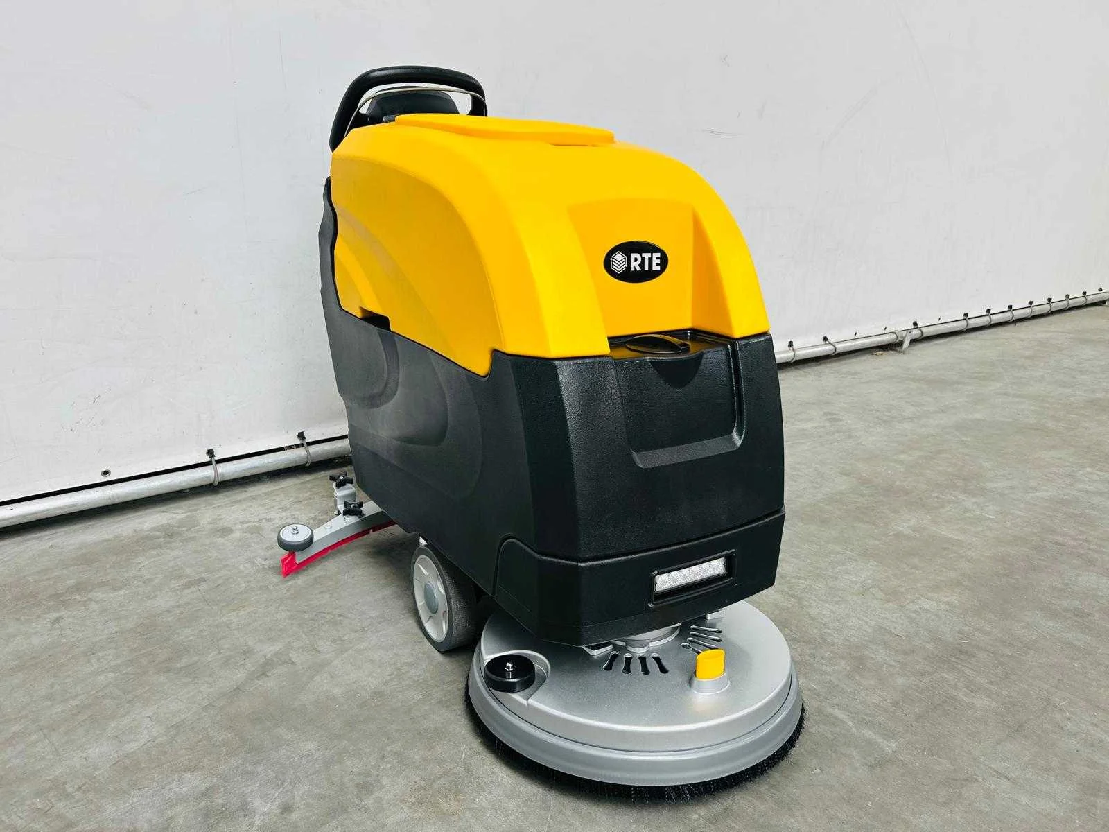 Disk brush 510mm; squeegee width 850mm; clear watertank 55L; Recovery 60L; work capacity 2000m/h; Voltage 24V; Battery 200Ah*2*12V; Power 1500W; self driven; batterij monitor; light; speed regulator; horn; Charger; manual; Merk: RTE Type: FS50-SD Bouwjaar: 2025 Werkbreedte: 510mm Elektrisch: true Aansluiting: 230V Accu lader: true Oplaadbaar: true Eigen gewicht: 220kg Totale afmeting L: 1400mm Totale afmeting Breedte: 850mm Totale afmeting Hoogte: 1050mm