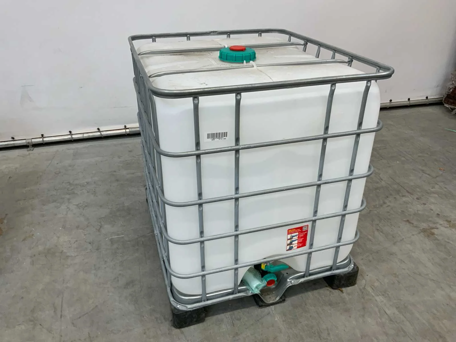 Vloeistoffen container; metaal frame; type kan iets afwijken; 6308 Merk: Schutz Totale afmeting L: 1200mm Totale afmeting Breedte: 1000mm Totale afmeting Hoogte: 1150mm