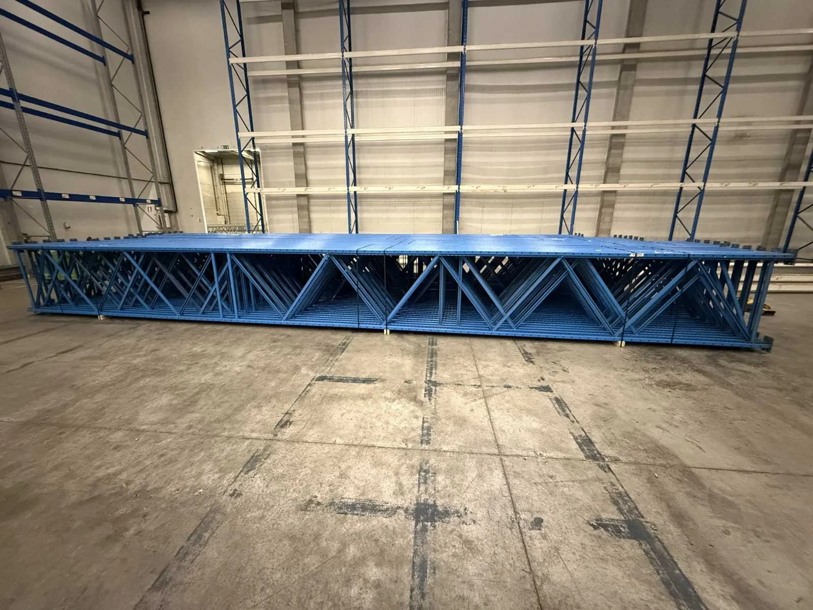 Wordt gebundeld en transport klaar uitgeleverd; Staanders zijn 10800x1100x100mm; liggers zijn 3890x140x50mm; Merk: Stow Type: OT Aantal secties: 10 Sectie afm. b: 3890mm Sectie diepte: 1100mm Sectie afm. h: 10800mm Aantal staanders: 11 Aantal liggers: 80 Demontabel: true