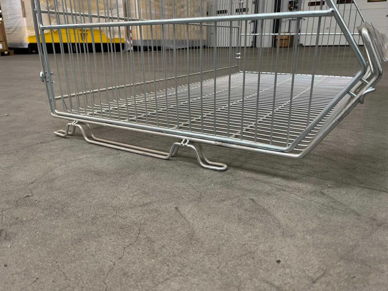 Draadmanden zijn stapelbaar; staal; let op; tussenschotjes kunnen ontbreken bij draadmand; er staan 8 draadmanden op 1 pallet; 8047 Totale afmeting L: 680mm Totale afmeting Breedte: 1160mm Totale afmeting Hoogte: 480mm
