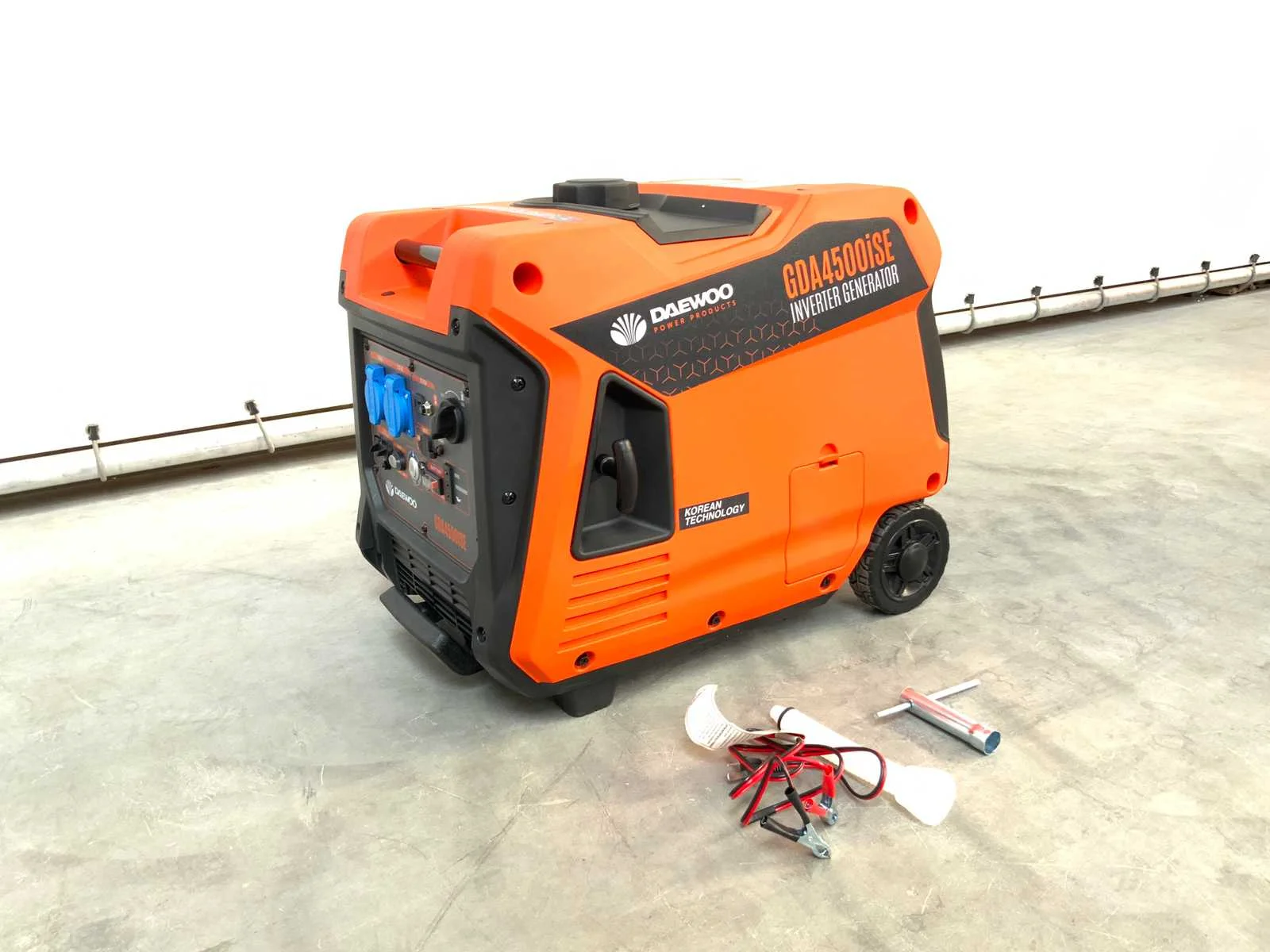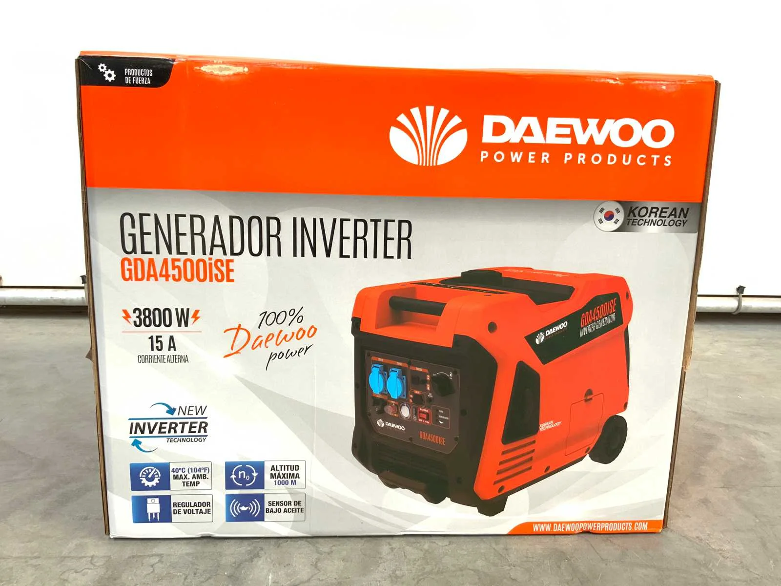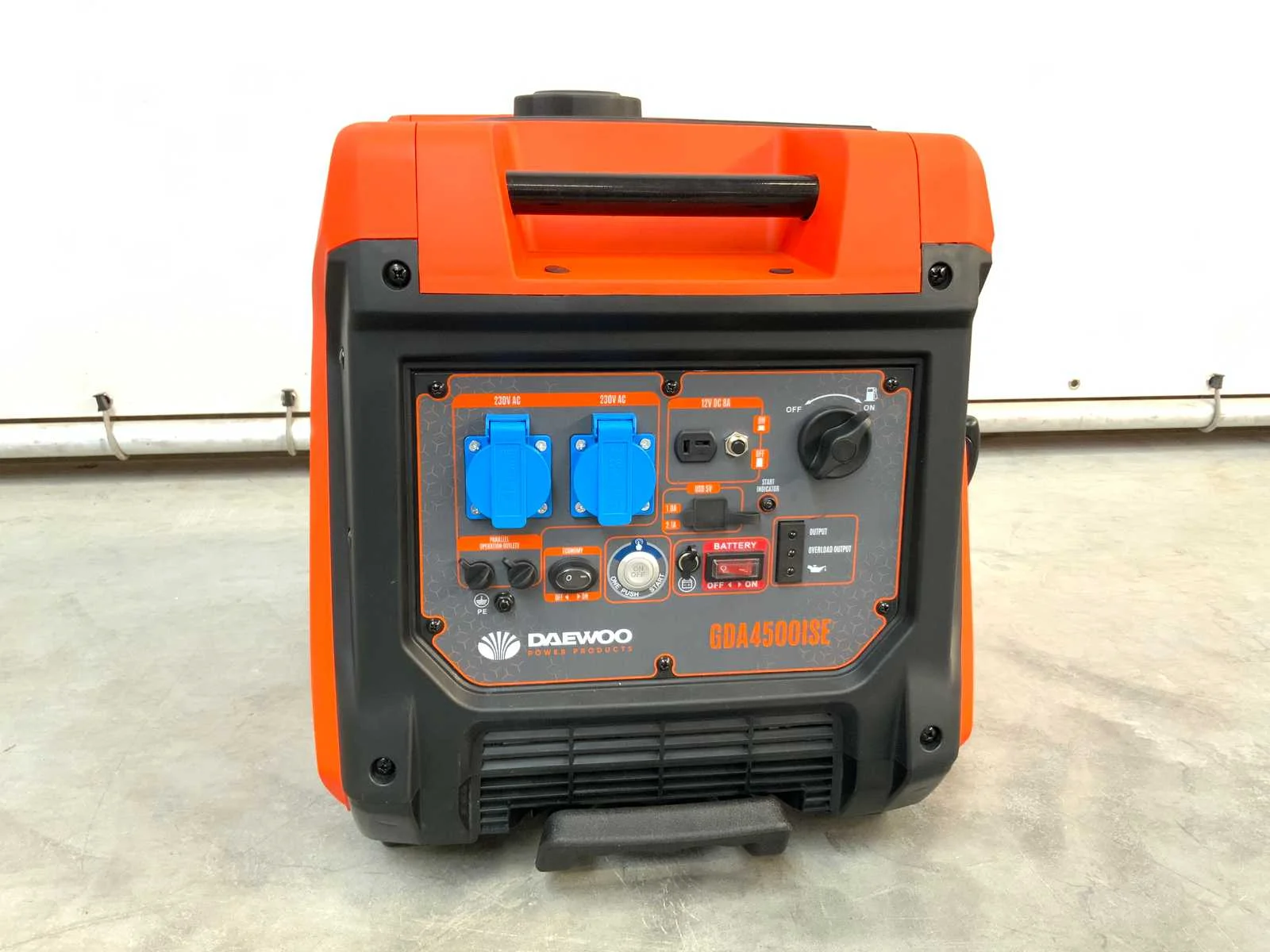 Werking onbekend; Uitgangen 2x 230V AC - 1x 12V DC 8A - USB 5V 1.0A/2.1A; Technische specificaties; Frequency 50Hz; Running watts 3500W; Max watts 3800W; AC current 15A; Max. Altitude 1000m; Performance Class G1; Quality class A; Max. Amb. Temp 40'c; Power factor 1.0; Low-power generating set; phase single; 5758 Merk: Daewoo Type: GDA4500ISE Bouwjaar: 2023 Benzine: true Machinegewicht: 47kg