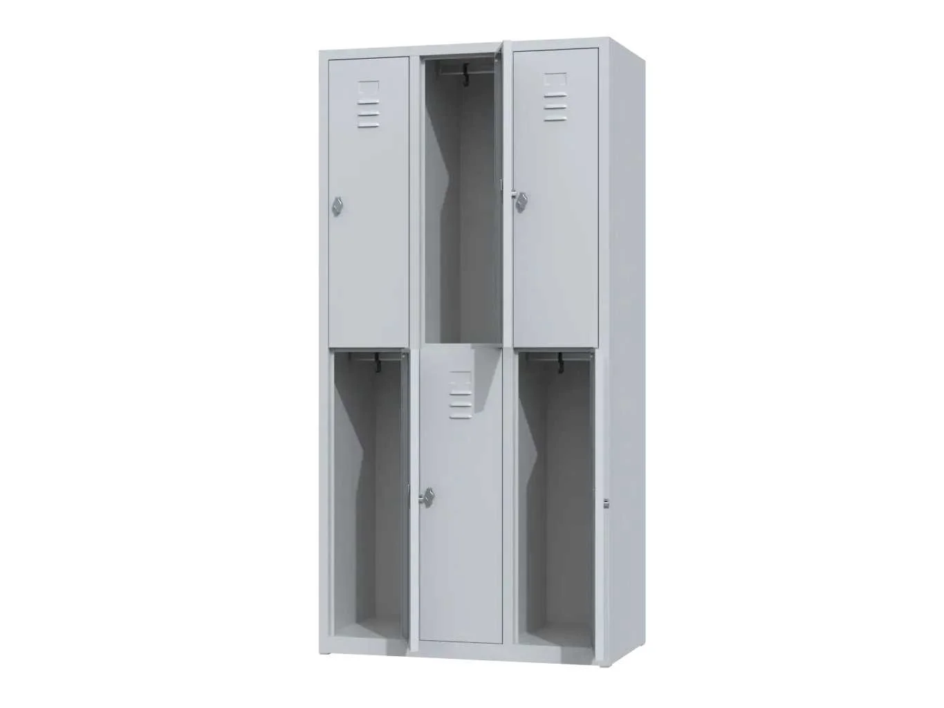 6 deurs; grijs; Met ventilatieperforatie ; Draaiknopslot ; Met etikethouder ; Inclusief kledinghaken Merk: Povag Type: PLP-102 Breedte: 89cm Hoogte: 180cm Diepte: 50cm