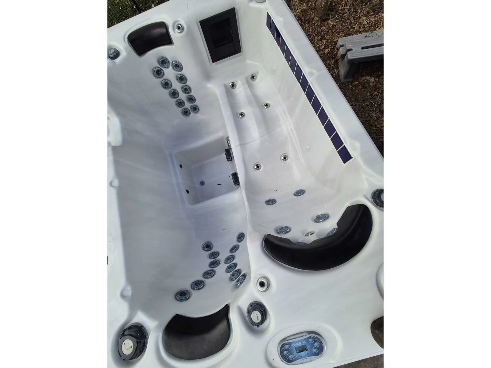 Voorzien van grote zwem jets om tegen in te zwemmen voor top sport; 5 zitplaatsen en 1 ligplaats; kunststof omkasting; Amerikaanse besturingssysteem; led verlichting; dubbel cabine zwemspa; afzonderlijk van elkaar temperatuur in te stellen; Niet getest op functioneren (Marge, geen BTW) Merk: Balboa Model: 15 persoons Product type: Dubbele cabine Spanning: 380V Verlichting: Ja Jets: 67 Aantal personen: 15 Lengte: 560cm Breedte: 230cm Hoogte: 136cm