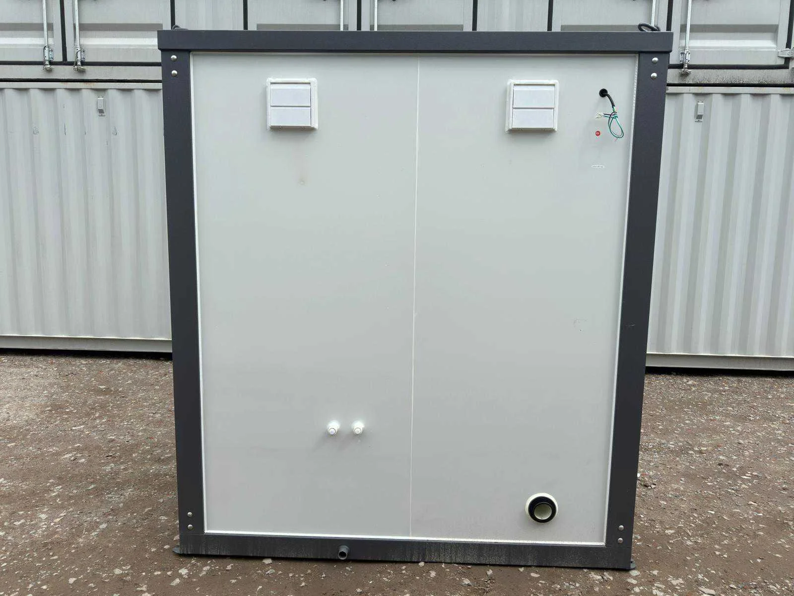 Voorzien van 1 douche; 1 toilet en 1 wastafel; wc borstel; toiletrolhouder; 220 Volt aansluiting; afsluitbaar met sleutel en knopcilinder; lepel gaten en hijsogen; ongebruikt Merk: Stahlworks Type: Double Bouwjaar: 2025 Aantal toiletten: 1 Aantal wastafels: 1 Aantal douches: 1 Eigen gewicht: 490kg Totale afmeting L: 2160mm Totale afmeting Breedte: 1300mm Totale afmeting Hoogte: 2360mm