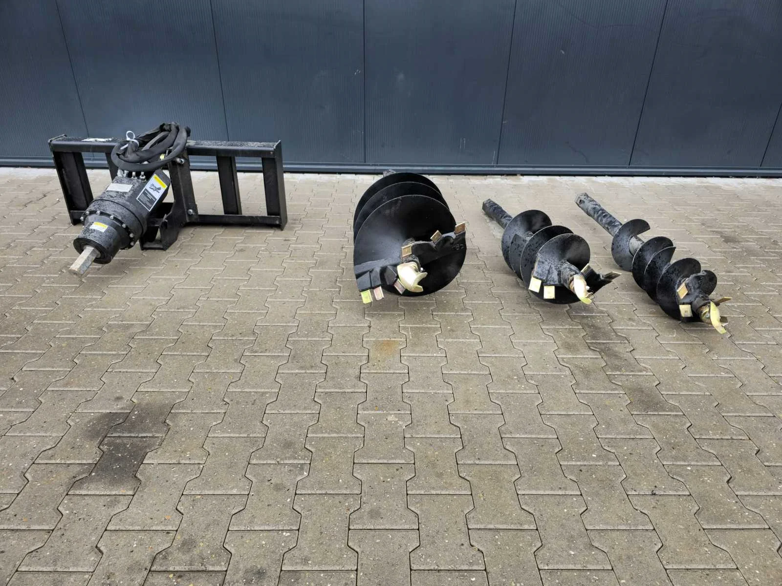 Voorzien van schranklader/“Bobcat” opname-/aanbouwplaat; 3 grondboren; boorlengte 160 cm; hydromotor (olievolumestroom 50-75 liter per minuut); boordiameter: 1x ø450 mm; 1x ø300 mm; 1x ø200 mm; transportafmeting (LxBxH): 1330x1250x810 mm; geleverd in krat; ongebruikt Merk: Rhino-Cross Type: 450/200 Bouwjaar: 2025 Werkdiepte: 1600mm Eigen gewicht: 340kg