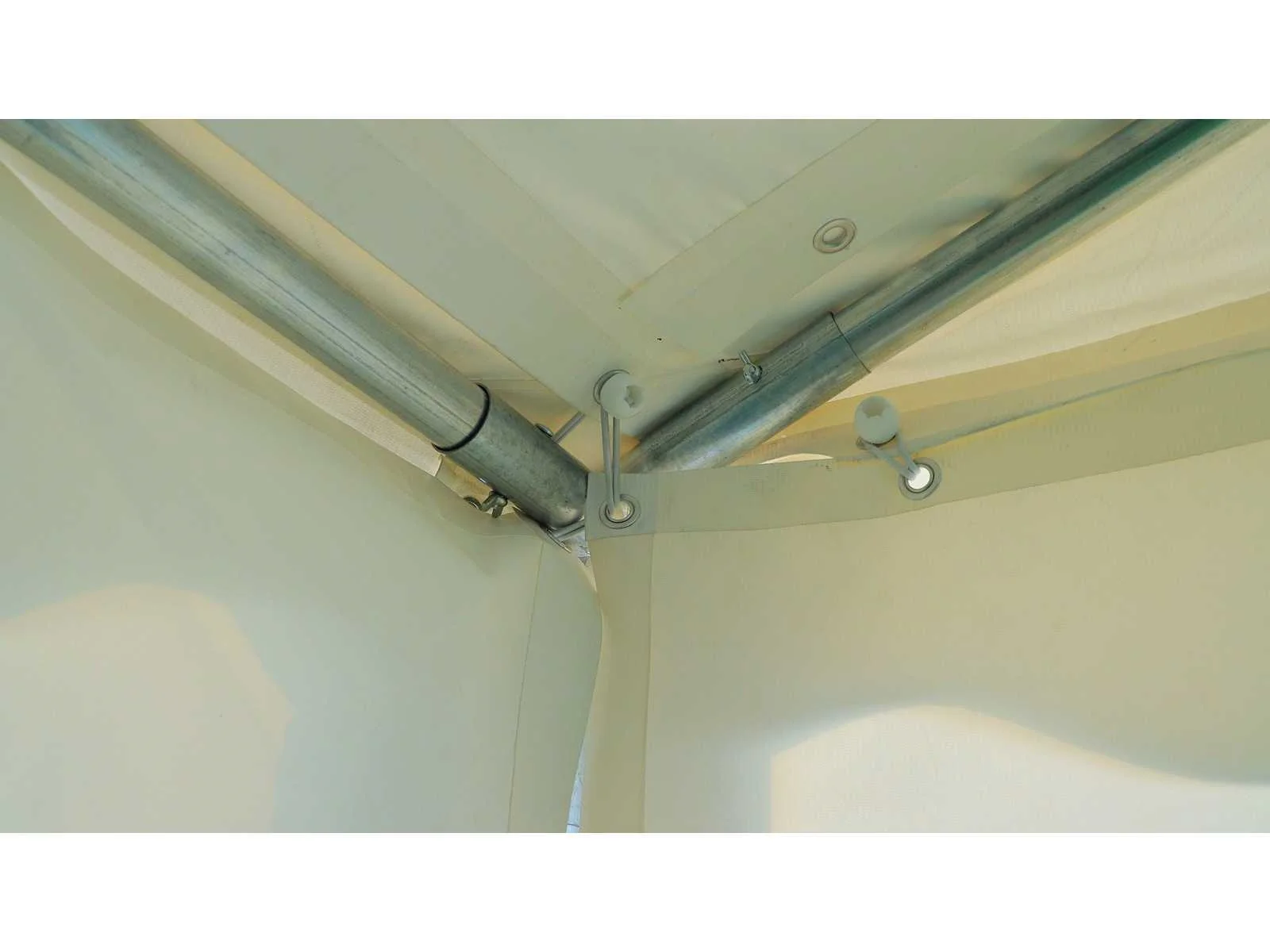 Voorzien van afmetingen 5x10x2.9m (bxlxh); Nokhoogte 300cm; Ingang hoogte 200cm; Ingang Breedte: 300cm; Tent Lengte: 10m; Tent breedte: 5m; Tent hoogte 2.9m; Ongebruikt Merk: Rhino-Cross-Party Tent Model: PT0510FE Product type: 5x10x2.9 Kleur: Wit Lengte: 1000cm Breedte: 500cm Hoogte: 290cm Materiaal: PVC