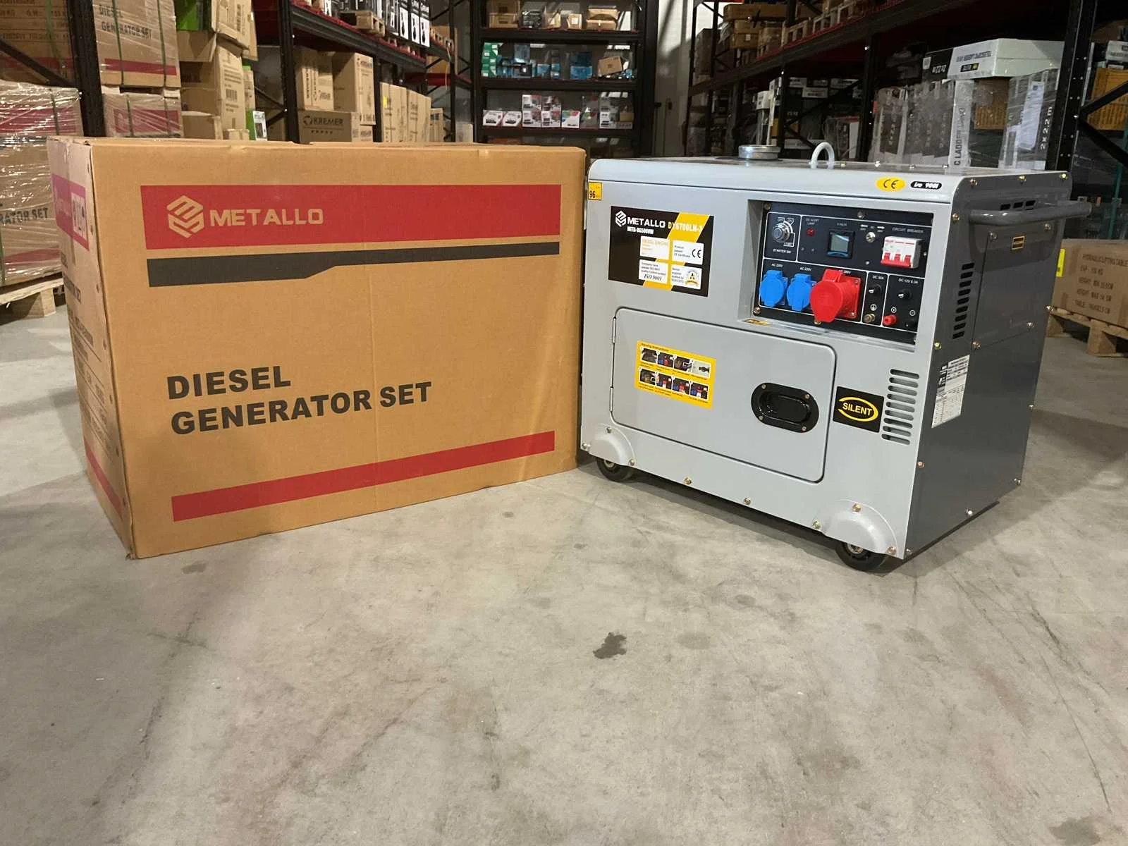 Voorzien van 418-cm³-dieselmotor; 4-takt; 15L-tank; 5,0 kW; frequentie 50 Hz; 230V-aansluiting; 380V-aansluiting; elektrische start; voltmeter; AVR-controller; 5kVA; ongebruikt in doos. Ongebruikt in doos (Afmeting transport verpakking 940x540x690 mm lxbxh, gewicht 150 kg) Merk: Metallo Type: META-DG5000W Bouwjaar: 2025 Capaciteit.: 5kVA Diesel: true Motorvermogen (kW): 5kW Luchtgekoeld: true Mobiel: true Machinegewicht: 150kg Totale afmeting L: 940mm Totale afmeting Breedte: 540mm Totale afmeting Hoogte: 690mm