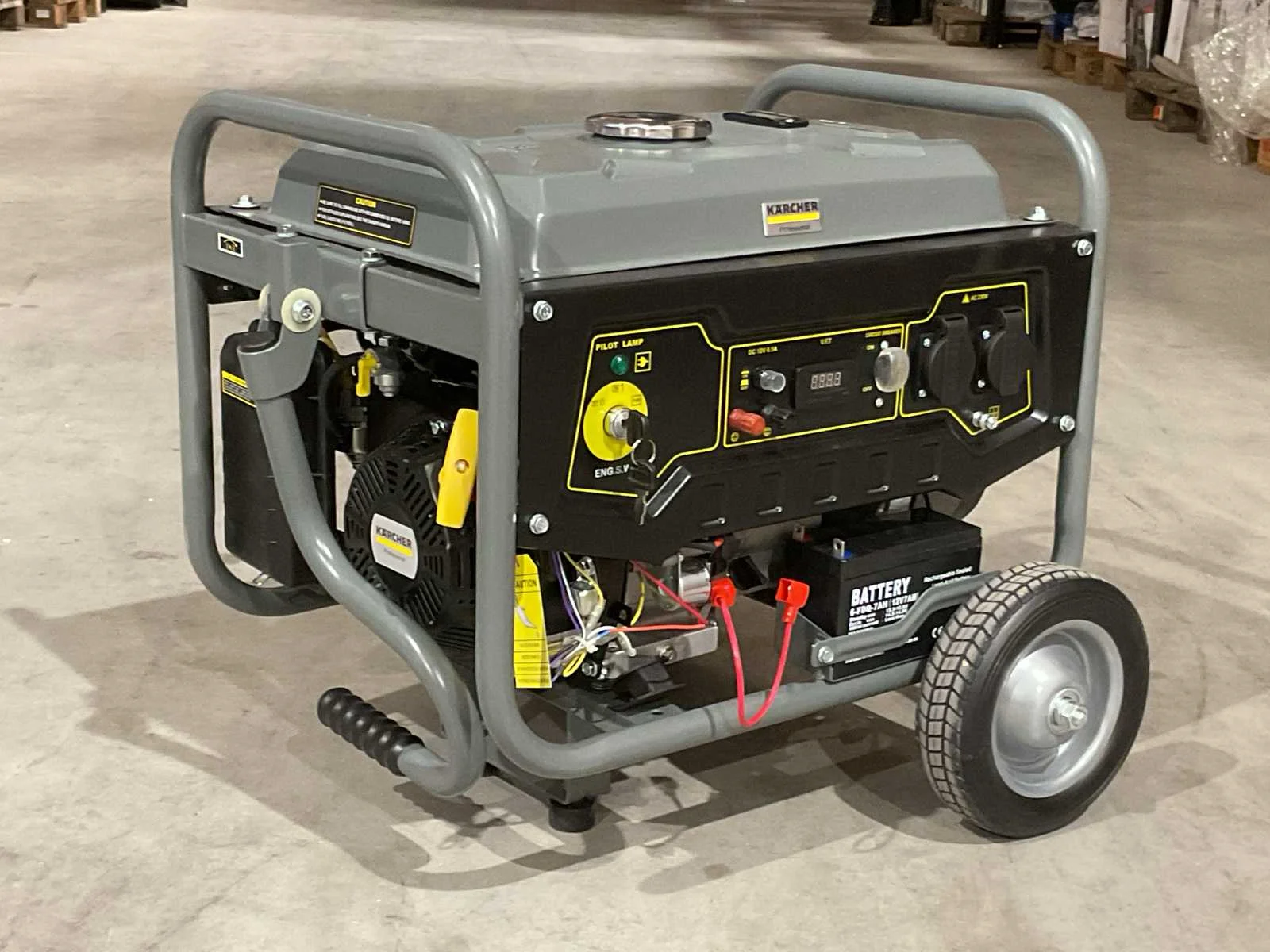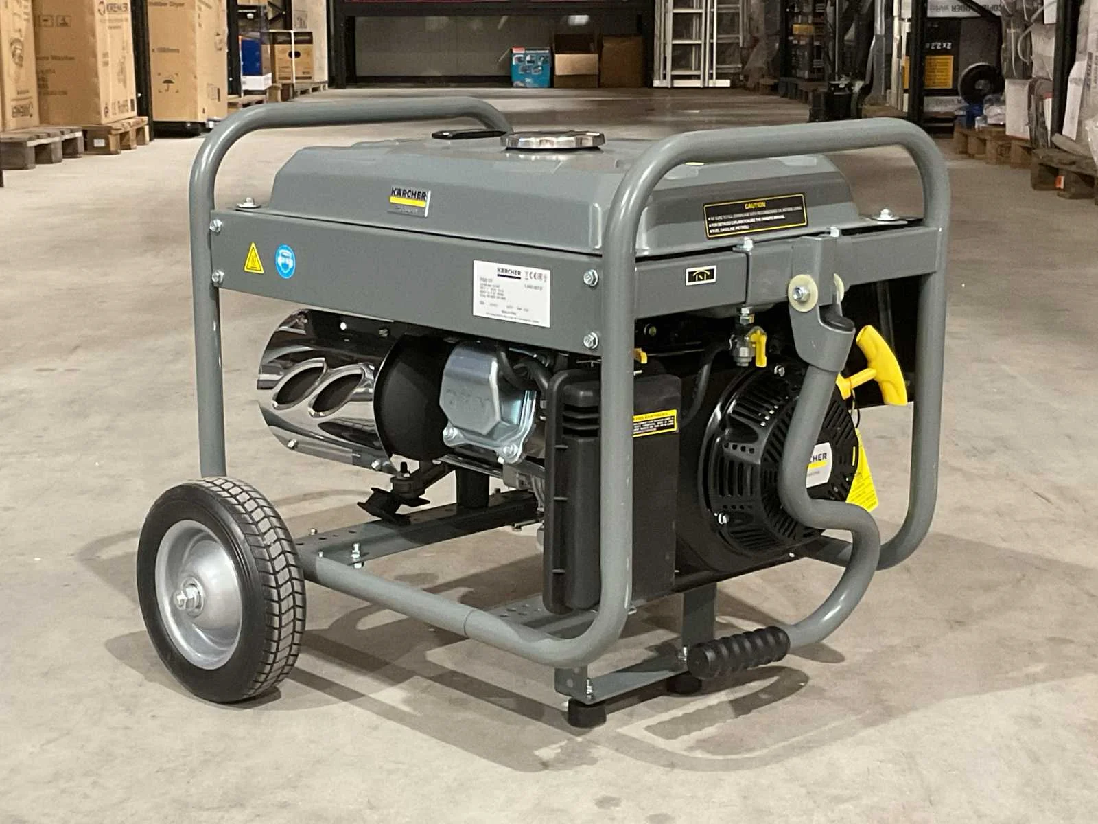 Voorzien van Spanning (Ph/V) 1 / 230; geluidsniveau (dB(A)) 74; Nominaal vermogen (kW)2,8; Vermogen (kW) 3; Type aandrijving: Benzine; Cilinderinhoud (cm³) 208; 1" adapter voor aansluiten van tuinslangen aan de drukzijde (kW/per uur) 4 / 5,4; Brandstofverbruik (l/u) 2,3; Tankinhoud (l) 15; Looptijd bij 50% output (u) 12; Looptijd bij 100% output (u) 6,5; DC-uitgang (12 V); Beschermingsklasse IP 23; Lage olie- en overbelastingsbeveiliging; Brandstofmeter; Eenfase-aansluiting type F (Schuko); Automatische spanningsregeling (AVR); Ongebruikt in doos Merk: Kärcher Type: PGG 3/1 Bouwjaar: 2025 Capaciteit.: 2.8kVA Benzine: true Motorvermogen (kW): 3kW Luchtgekoeld: true Mobiel: true Machinegewicht: 56.9kg Totale afmeting L: 7150mm Totale afmeting Breedte: 480mm Totale afmeting Hoogte: 470mm