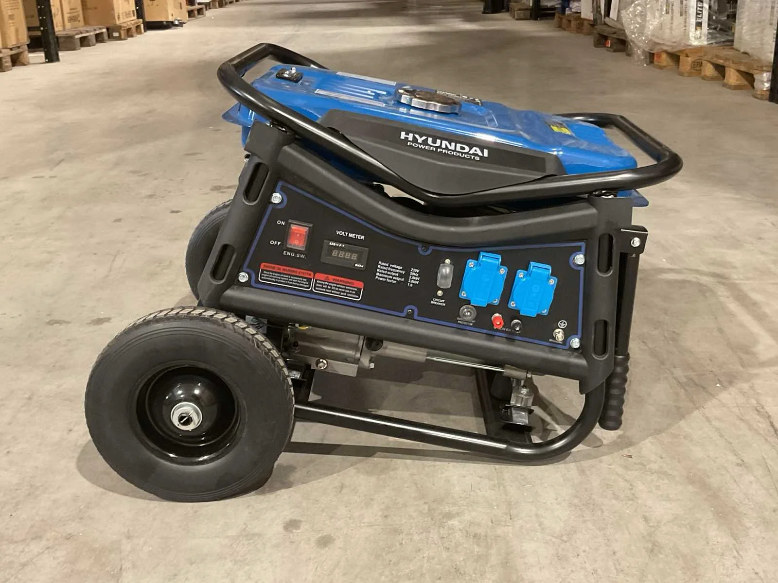Voorzien van 210 cc OHV 4-takt luchtgekoelde motor; 15ltr tank euro 95; oliereservoir 600ml; 2x230V 16AAC output; 1x12V 8,3A DC outputAVR binnen een marge van +/- 3% van 230V; olie-alarm met automatisch uitschakel functie; Ongebruikt in doos. Merk: Hyundai Type: Benzine generator 55059FF / LB3500-YB Bouwjaar: 2025 Capaciteit.: 3kVA Benzine: true Type motor: Hyundai OHV 4-takt luchtgekoelde motor Aantal cilinders: 1 Motorvermogen (kW): 2.8kW Luchtgekoeld: true Mobiel: true Handboek aanwezig: true Machinegewicht: 42kg Totale afmeting L: 6100mm Totale afmeting Breedte: 4800mm Totale afmeting Hoogte: 4480mm