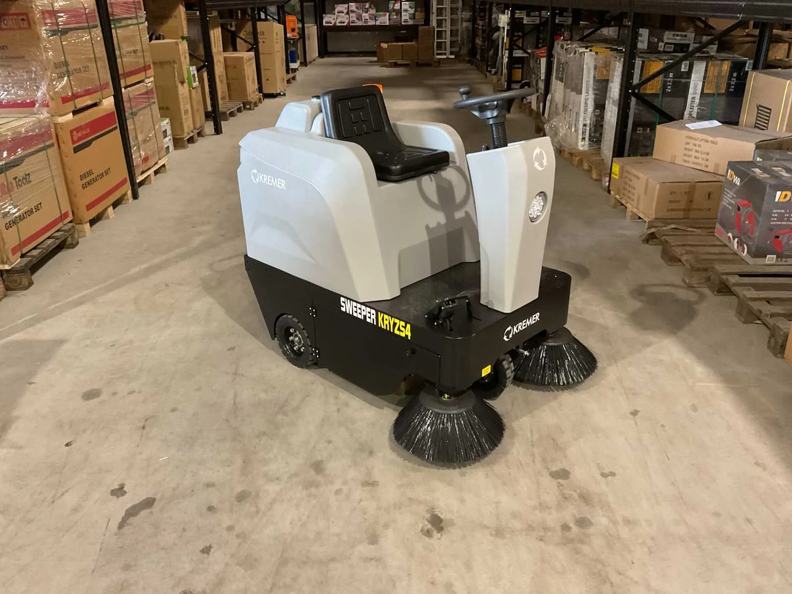 Voorzien van 2 reserve borstels; Afmetingen (LxBxH) 160 x 116 x 130 cm; Accu 48 V; Veegbreedte 1250 mm; Breedte zijborstels 2*400 mm; Loopmotor 700 W; Accucapaciteit 48 v/ 65 ah * 4 stuks; Totaalgewicht 396 kg; Breedte hoofdborstel 500 mm; Werkefficiëntie 6380 m2/h; Vuilcontainerinhoud 80L; Rolborstelmotor 700W; Loopsnelheid 0-10 Km/h; Ongebruikt Merk: Kremer Type: Sweeper KRYZ54 Bouwjaar: 2025 Werkbreedte: 1250mm Elektrisch: true Aansluiting: 48V Eigen gewicht: 396kg Totale afmeting L: 160mm Totale afmeting Breedte: 116mm Totale afmeting Hoogte: 130mm