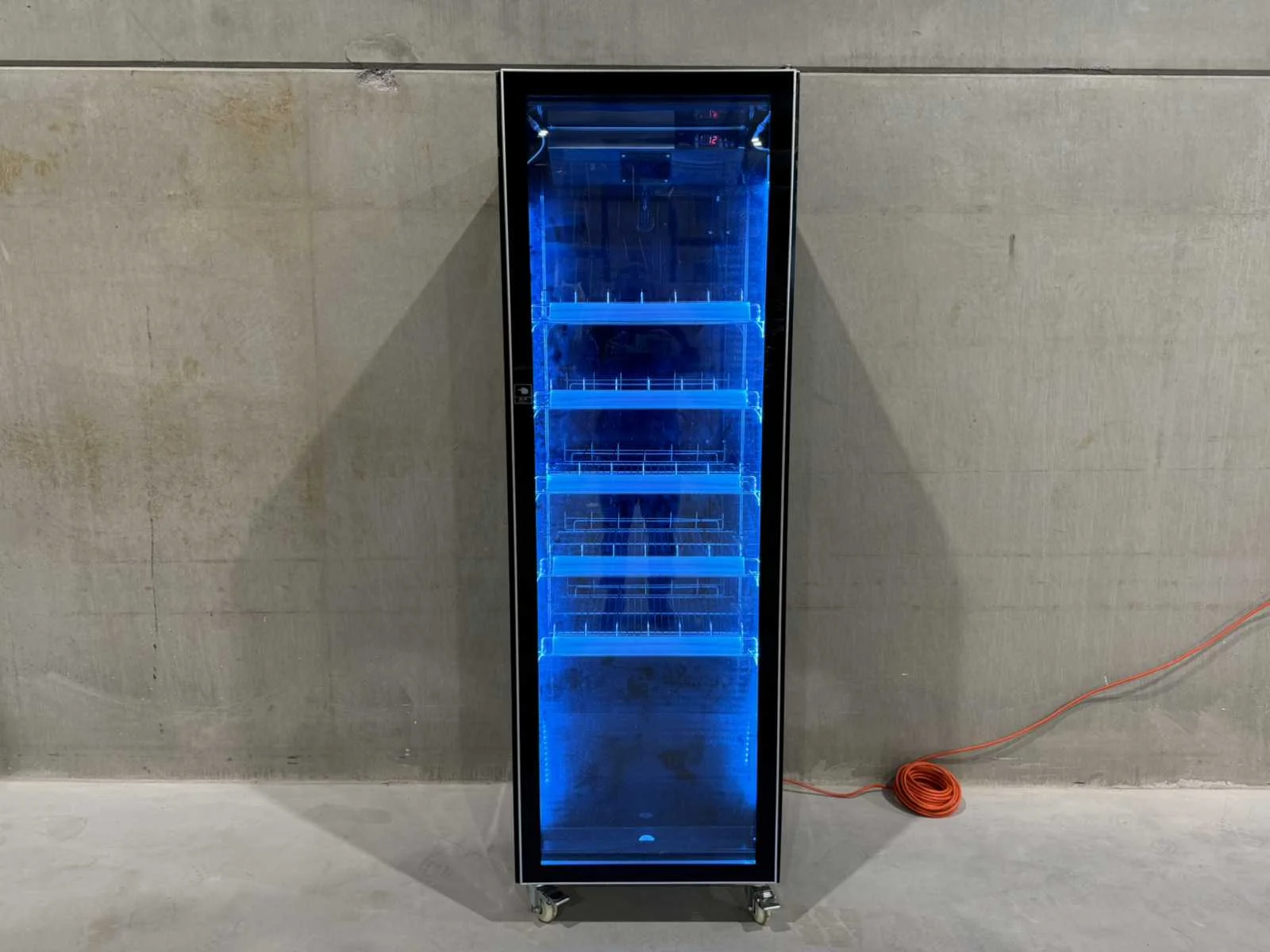 Voorzien van glazen deur; verlichting in 3 kleuren; zwenkwielen; houders voor flesjes of blikjes drinken; ongebruikt Merk: VTC Type: WH01 Bouwjaar: 2025 Mobiel: true Aansluiting: 230V Digitale uitlezing: true Temperatuurbereik max.: 8°c Temperatuurbereik min.: 2°c Capaciteit.: 380l Totale afmeting L: 60cm Totale afmeting Breedte: 62cm Totale afmeting Hoogte: 198cm