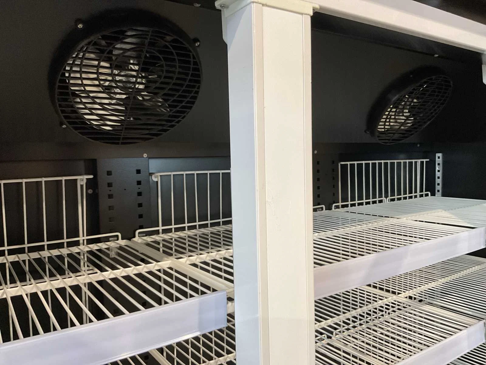 Voorzien van glazen deur; verlichting; zwenkwielen; ongebruikt Merk: Rhino-Cross-Catering Model: SD-M03 Spanning: 220V