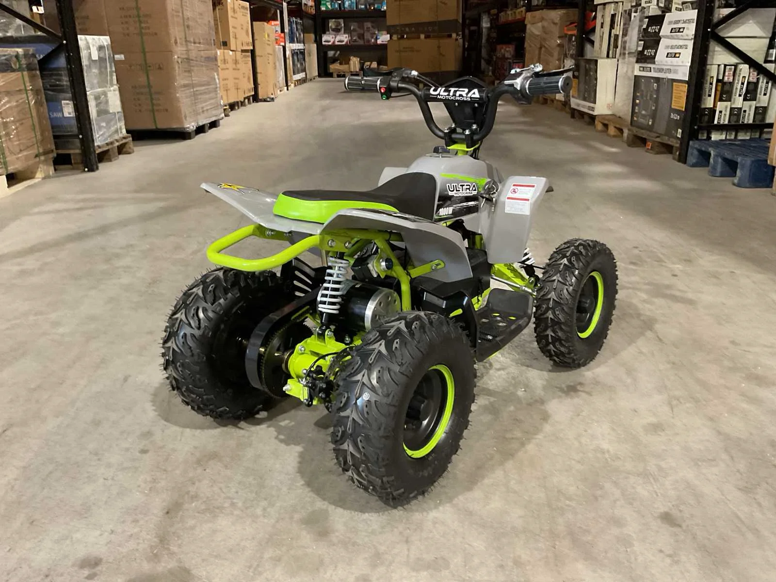 Voorzien van Krachtige 1000W motor; 36V accu; Snelheidsregelaar met 2 standen (10, 25 km/h); Achteruitschakelaar; Verlichting; Schijfremmen voor & achter; Ongebruikt Merk: Ultra Motocross Model: MA05E GR Product type: 1000W Kleur: Grijs/Groen