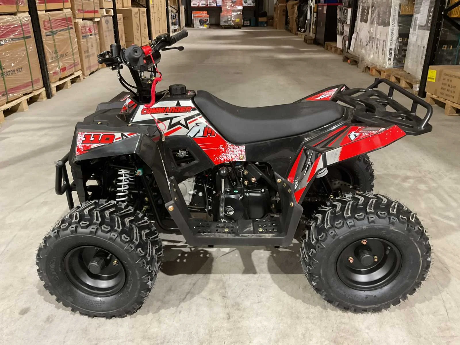 Voorzien van elektrische start; bandenmaat 7” inch; hydraulische schijfremmen; 2 sleutels; ongebruikt in krat (transport afmeting 120x75x65 cm) Merk: Ultra Motocross Product type: Commander 110 ZW Gewicht: 95kg Transmissie: Semi automaat Bouwjaar: 2025 Cilinderinhoud: 110cc Brandstof: Benzine Kleur: Zwart