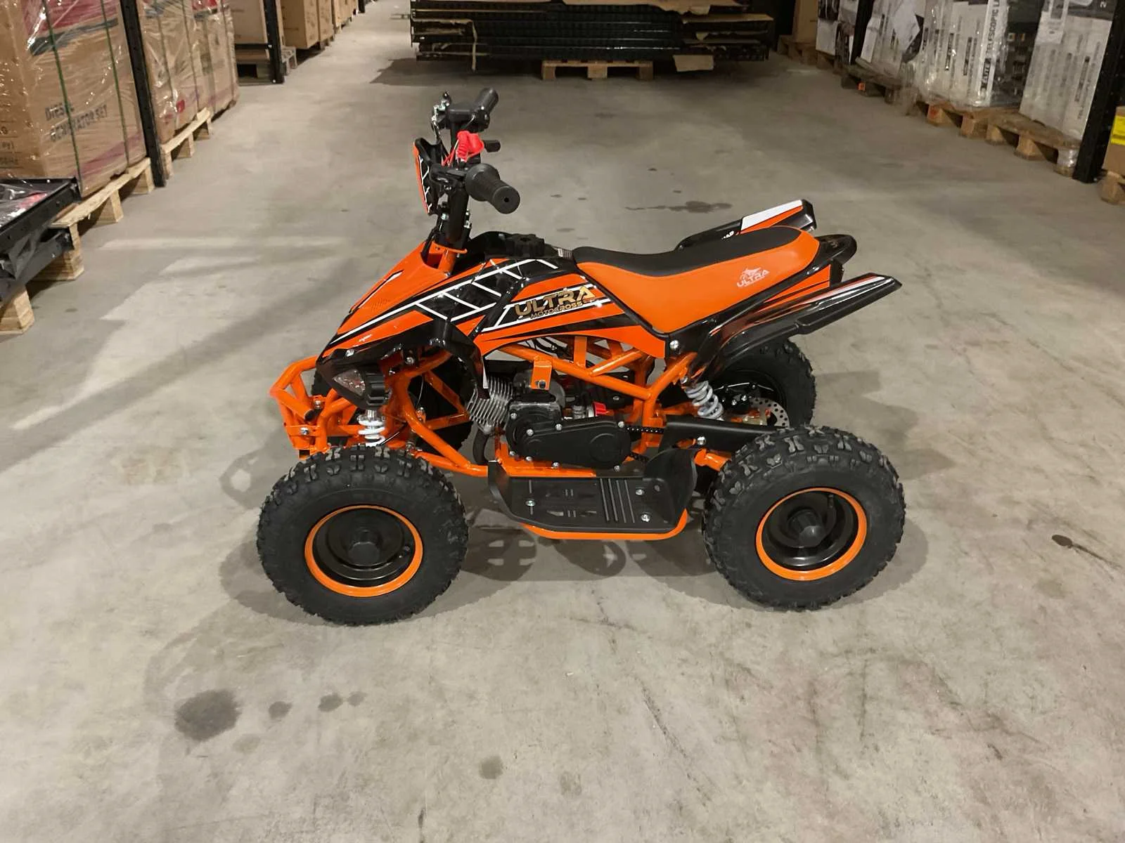 Voorzien van 49cc benzine motor; 2 takt; trek start; 3 verschillende snelheden; kill-switch; bandenmaat 6” inch; 2 sleutels; ongebruikt in doos (transport afmetingen 100x55x45 cm 36kg) Merk: Ultra Motocross Model: MA03 Product type: ATX 49 OR Gewicht: 34kg Aantal sleutels: 2 Transmissie: Automaat Bouwjaar: 2025 Cilinderinhoud: 49cc Brandstof: Benzine 2 Takt Kleur: Oranje