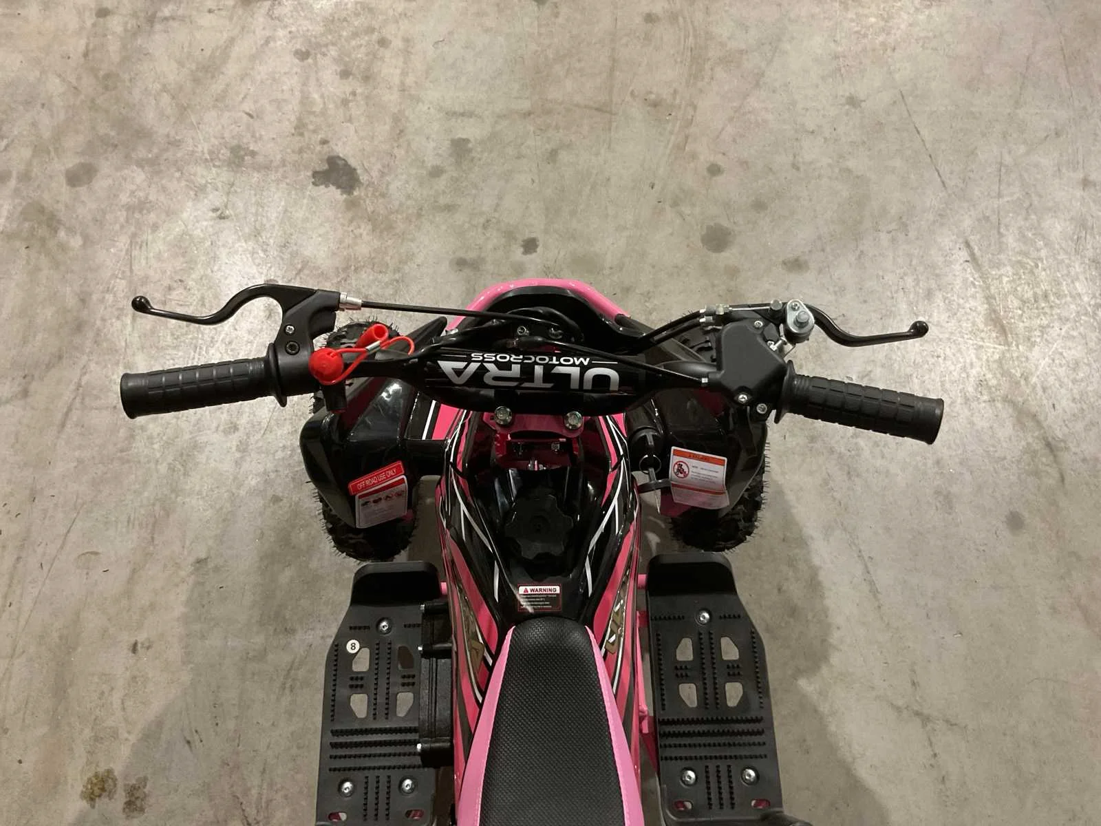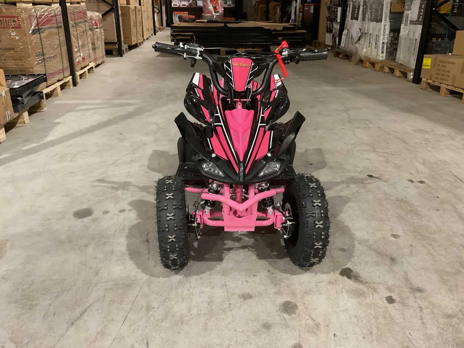 Voorzien van 49cc benzine motor; 2 takt; trek start; 3 verschillende snelheden; kill-switch; bandenmaat 6” inch; 2 sleutels; ongebruikt in doos (transport afmetingen 100x55x45 cm 36kg) Merk: Ultra Motocross Model: MA03 Product type: ATX 49 RZ Gewicht: 34kg Aantal sleutels: 2 Transmissie: Automaat Bouwjaar: 2025 Cilinderinhoud: 49cc Brandstof: Benzine 2 Takt Kleur: Roze