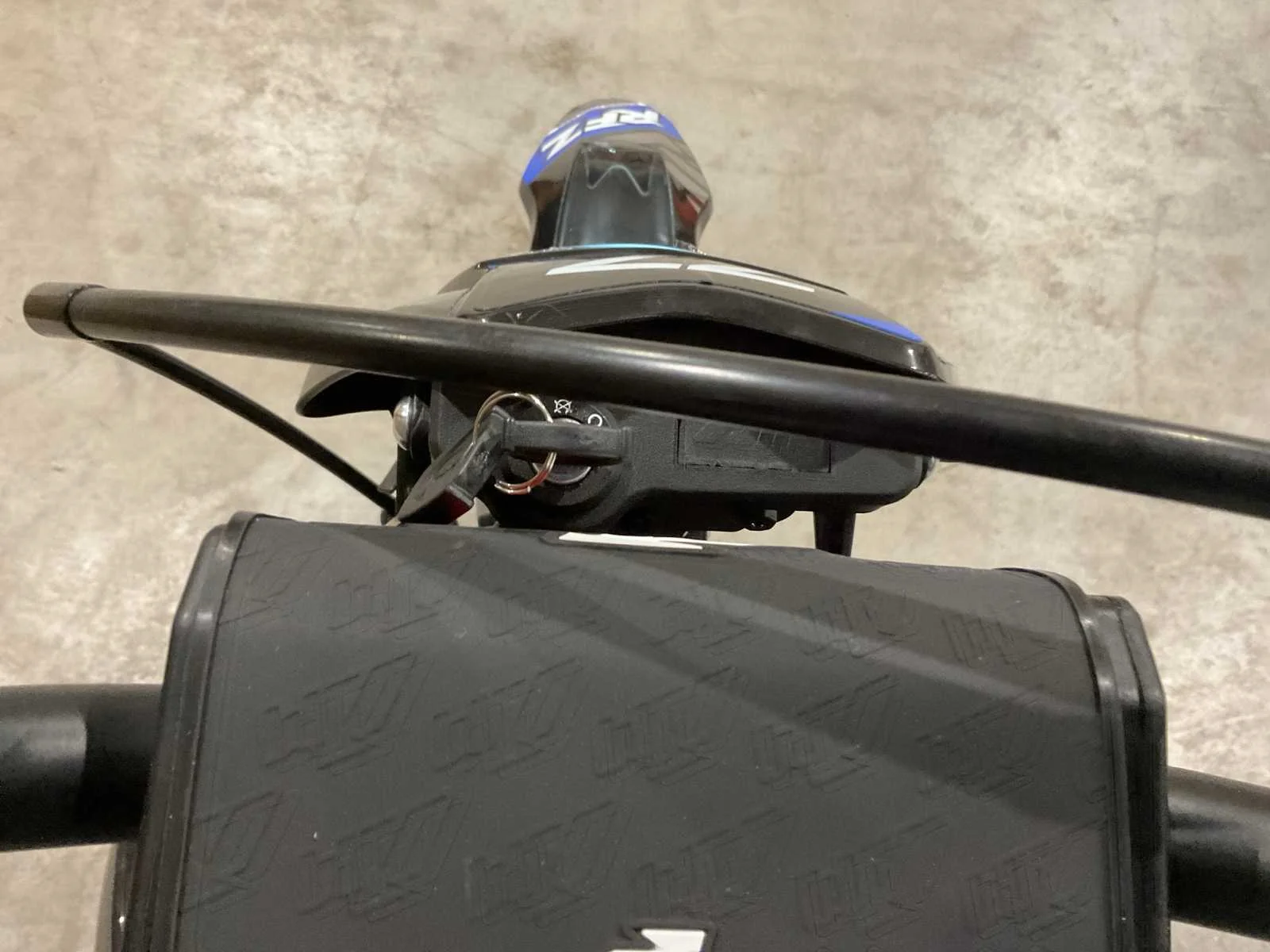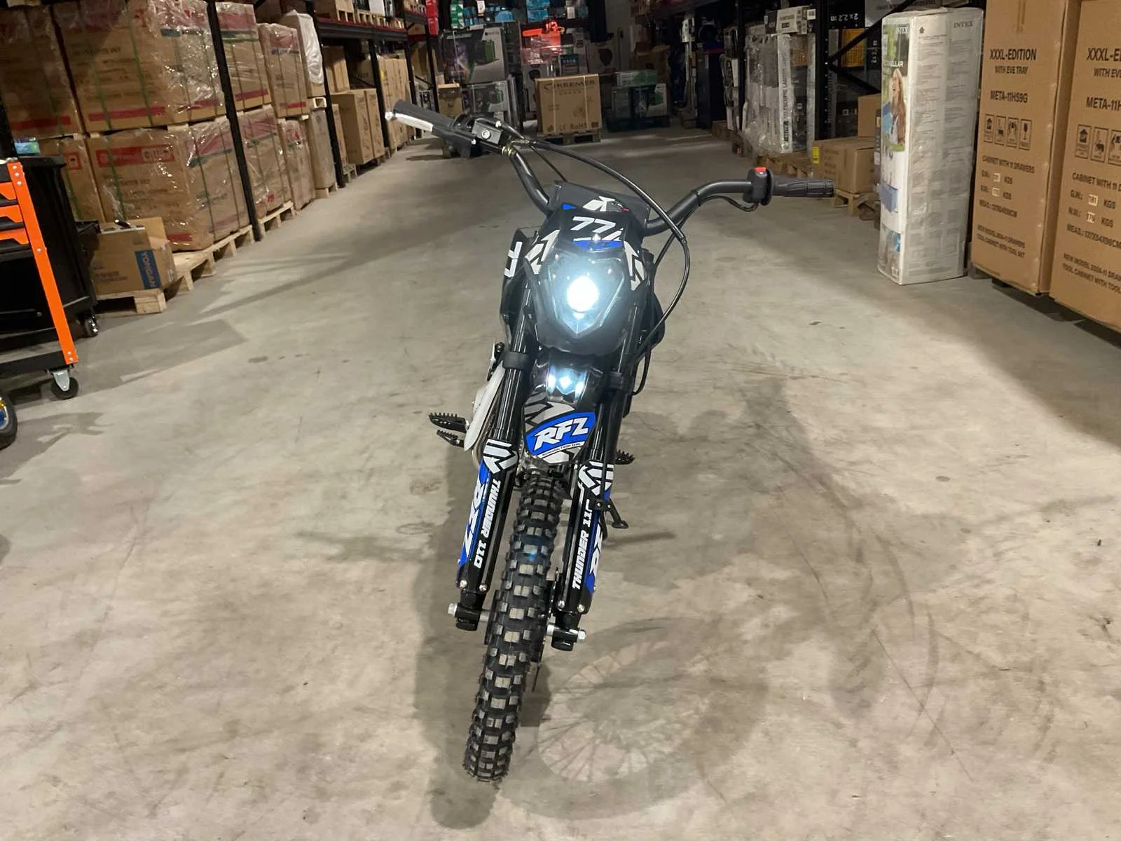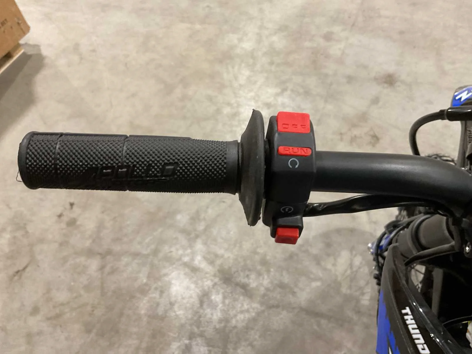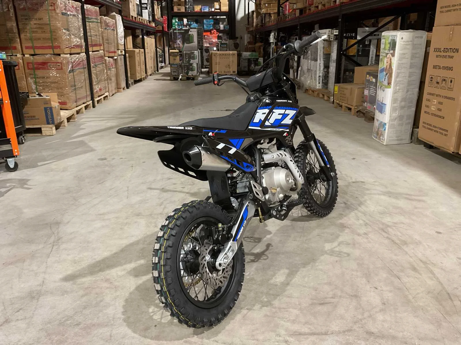 Voorzien van 110 cc motor; 4 takt; kick start; bandenmaat voor 14” inch achter 12” inch; hydraulische vering voor en achter; schijfremmen; verlichting; ongebruikt in doos (transport afmetingen 130x40x70 cm) Merk: Ultra Motocross Type: Thunder 110 BL Brandstof: Benzine Cilinderinhoud: 110cc Gewicht: 83kg Kleur: Blauw Transmissie: Automaat Aantal sleutels: 2